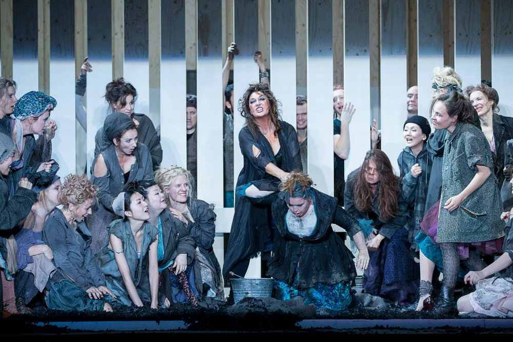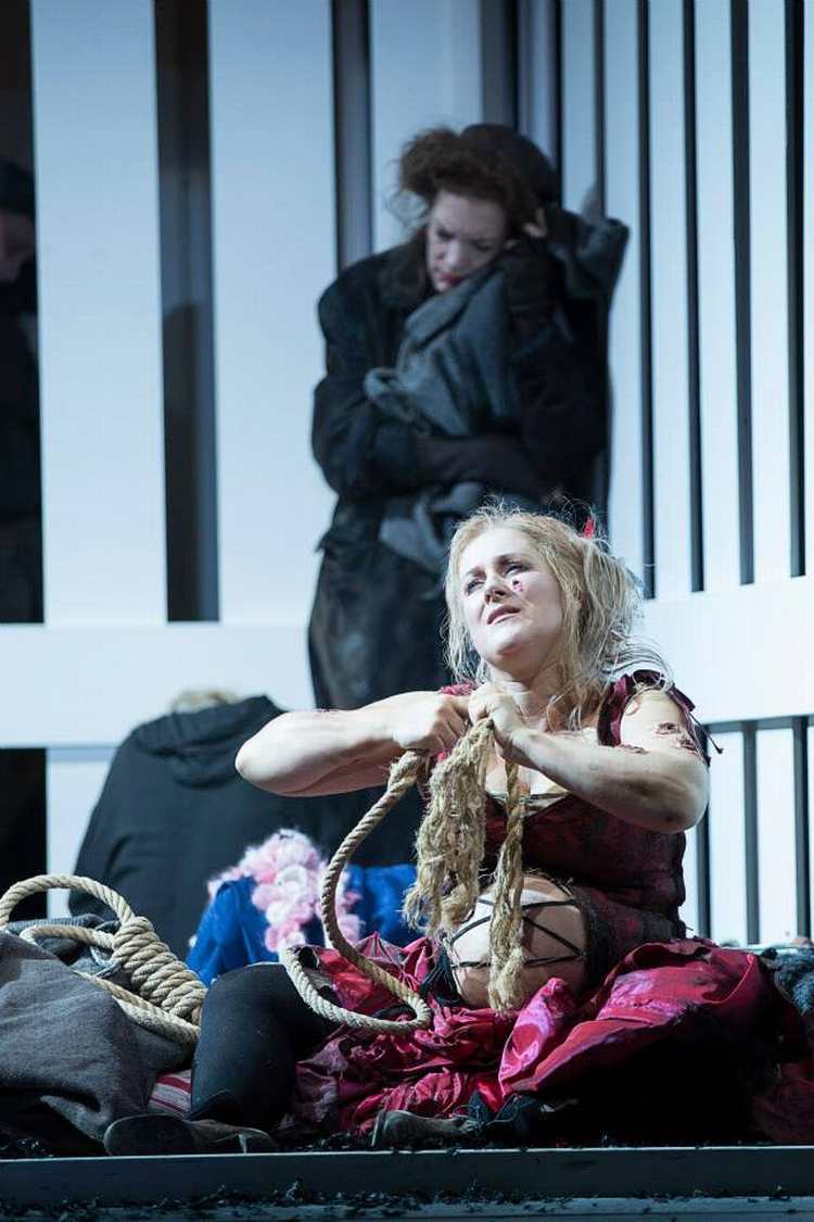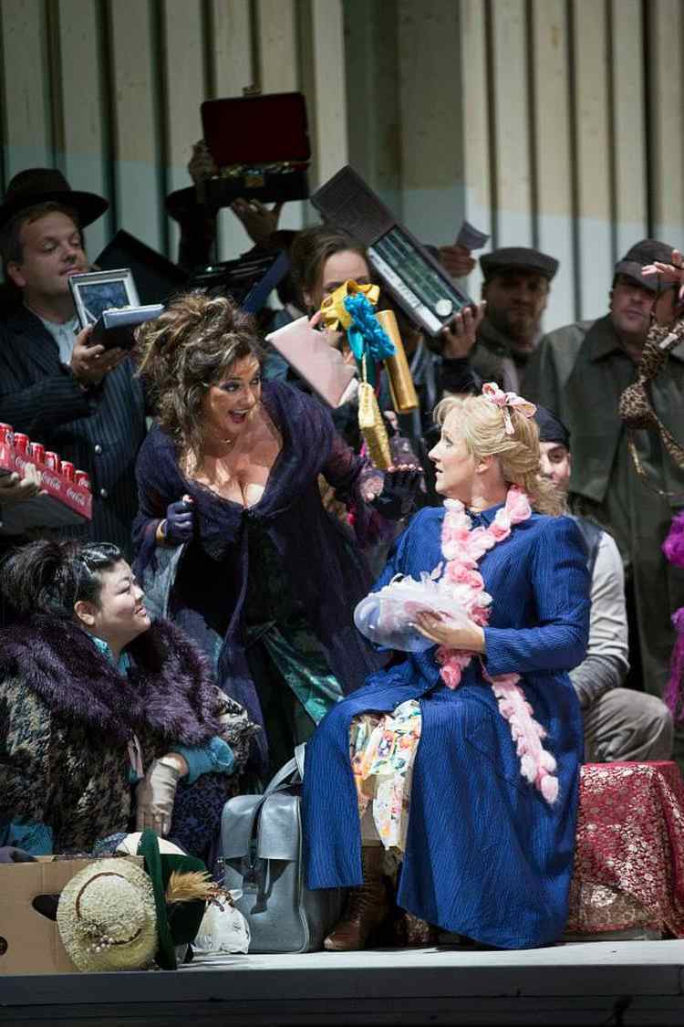 Zkušená skotská pěvkyně Marie McLaughlin buduje svoji proradnou kuplířku spíše prostředky epického divadla, zejména se zkušenostmi z weillovského repertoáru. Mezzosoprán Tary Erraught působivě vystihl v úsporně vedeném partu Kittino kolísání mezi pragmatičností a přátelstvím. Vokálně není part příliš rozsáhlý a omezuje se spíše na krátké repliky. Celkově lze říci, že dámské trio zapůsobilo více než pánská část souboru, protože ženské party jsou psány s větším smyslem pro rozvinutí charakterů jak hudebně, tak herecky.