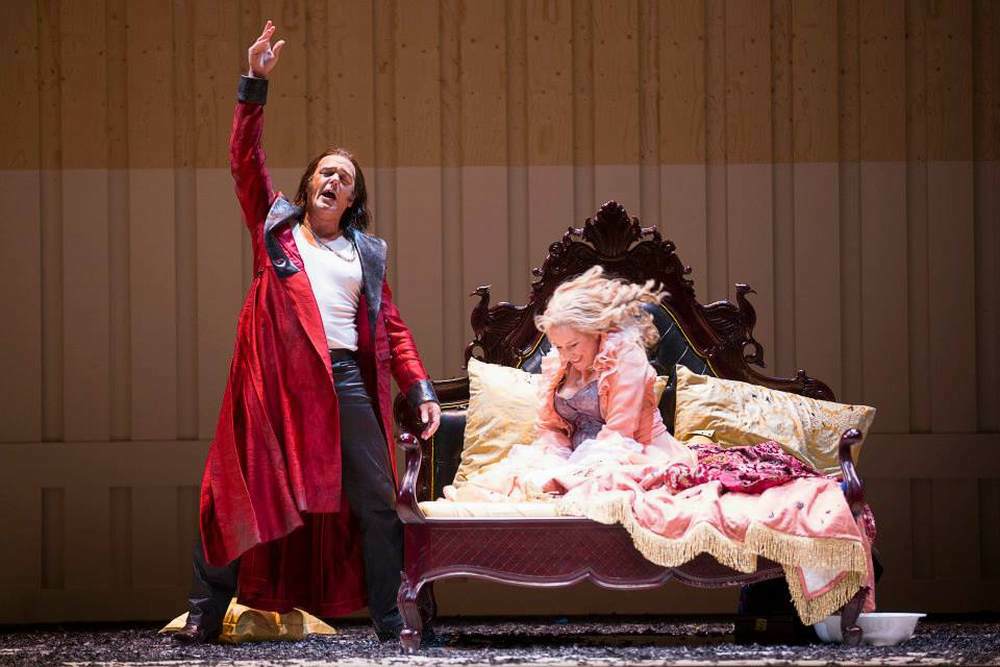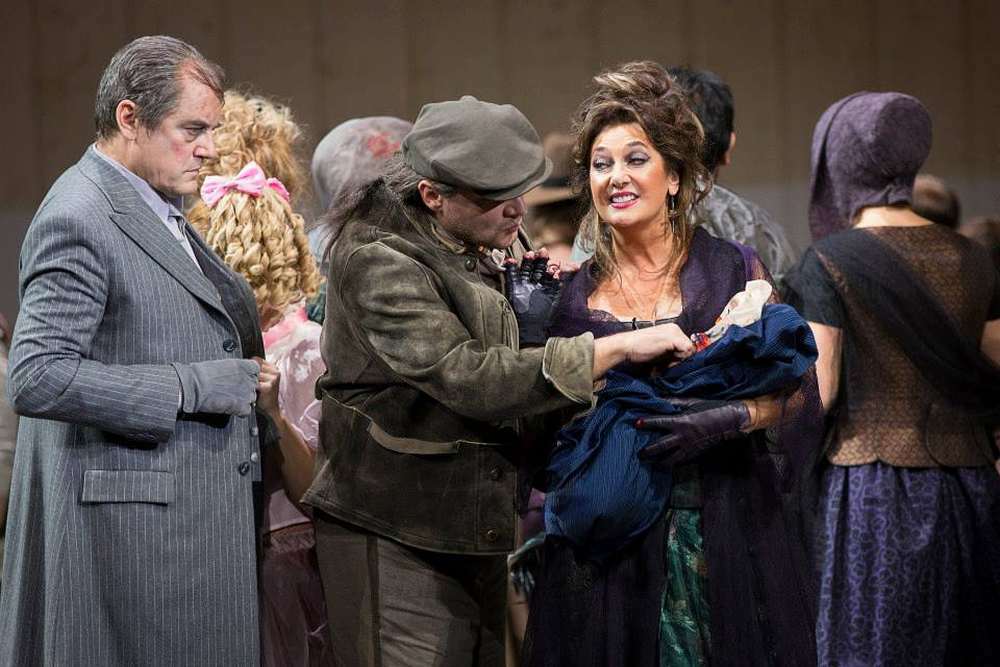 Barytonista Nathan Gunn, známý představitel operních „macho“ hrdinů, často vystupuje v moderních operách po celém světě. V postavě maximálně zdůraznil dvojakost a určitou nevyzpytatelnost Daltonova charakteru a jeho part se odvíjí od lyrických až k velmi dramatickým místům. Charakterní tenor Christophera Gilletta, interpreta oscilujícího mezi barokním a soudobým repertoárem, dobře vystihuje proradnost a pokrytectví postaršího zhýralce Lovaleceho, a to i přes určitou opotřebovanost hlasového materiálu. Herecky se nejvíce vedle představitelky Mother Needham přiblížil Hogarthovu satirickému pojetí postav směřujícímu až ke karikaturním rysům. V trojroli menších postav, z nichž nejlépe dopadla studie brutálního žalářníka ve čtvrté scéně, se velmi dobře uvedl francouzský basbarytonista Nicolas Testé, herecky velmi tvárný a s hezkým sytým hlasem. Pochvalu si zaslouží i sbor Arnold Schoenberg Chor pod vedením Erwina Ortnera, jako už po mnoho sezon v tomto divadle velmi spolehlivě nastudoval zcela novou partituru, a navíc členové sboru jsou schopni velmi nuancovaně provádět herecké akce na úrovní činoherního sboru. Finskému dirigentu Mikko Franckovi, který převzal nastudování opery po původně ohlášeném Donaldu Runniclesovi, nelze v nastudování nic vytknout kromě nerovnováhy mezi sólovými hlasy a zvukovou intenzitou orchestru, což bylo dáno ovšem i zesíleným obsazením orchestru.