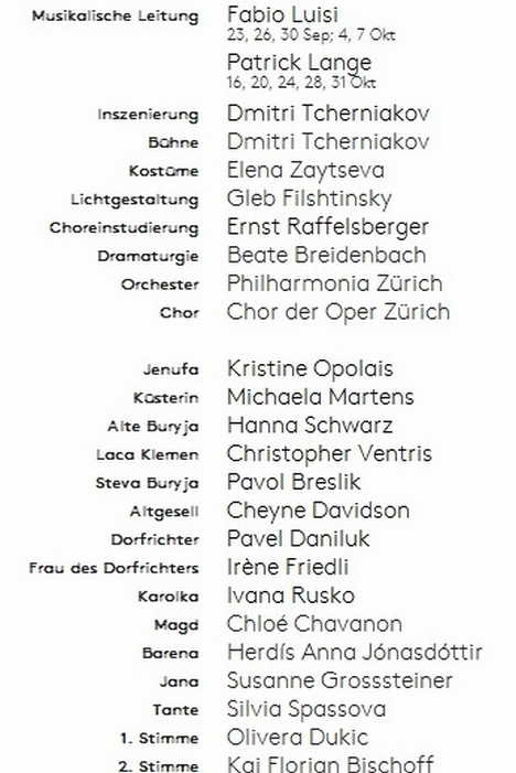 V neděli měla v Curychu premiéru Janáčkova Jenůfa. Už jen jméno režiséra Dmitrije Tcherniakova dává tušit, že i tenhle Janáček bude hodně moderní. Za dirigentským pultem nestál nikdo menší, než temperamentní Fabio Luisi, vedle Pavola Breslika jako Števy je v obsazení víc známých jmen, jenže aspoň na těch předních pozicích už žádné další české či slovenské…