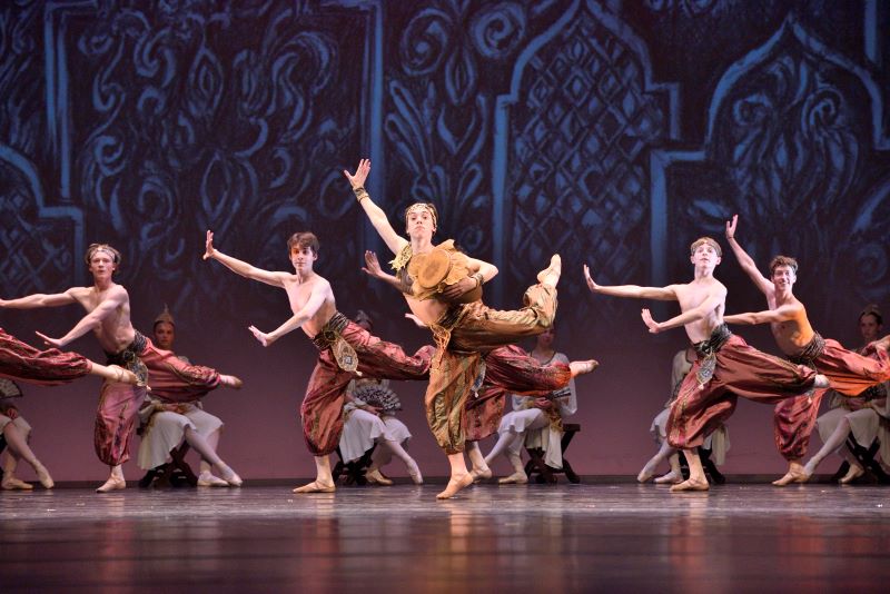 Letos padla volba na grand pas d’action z druhého jednání baletu Bajadéra. Kromě absolventů, kteří se musejí technicky i výrazově popasovat se sólovými rolemi a variacemi, se zařazením větších scénických celků dostává příležitosti k praxi i dalším studentům školy, často již od 3. ročníku. Odvaha a nadšení nechybí nikomu a studenti se musí semknout jako soubor. Působivá hudba Ludwiga Minkuse, ač hraná ze záznamu, k pohybu přímo vybízí, i když spolu s interprety mohou divákům „tančit“ jen zrcadlové neurony, obzvláště variace Gamzatti i Solora jsou tak lákavé, protože jejich melodie často provází taneční tréninky, velké skokové vazby…