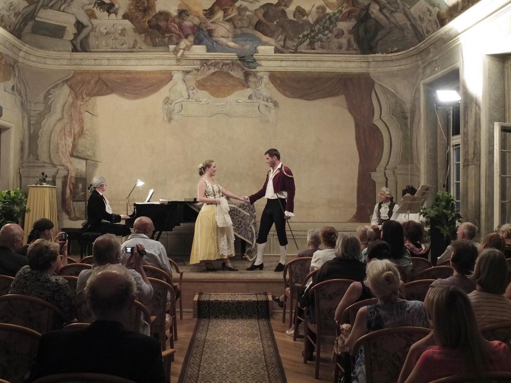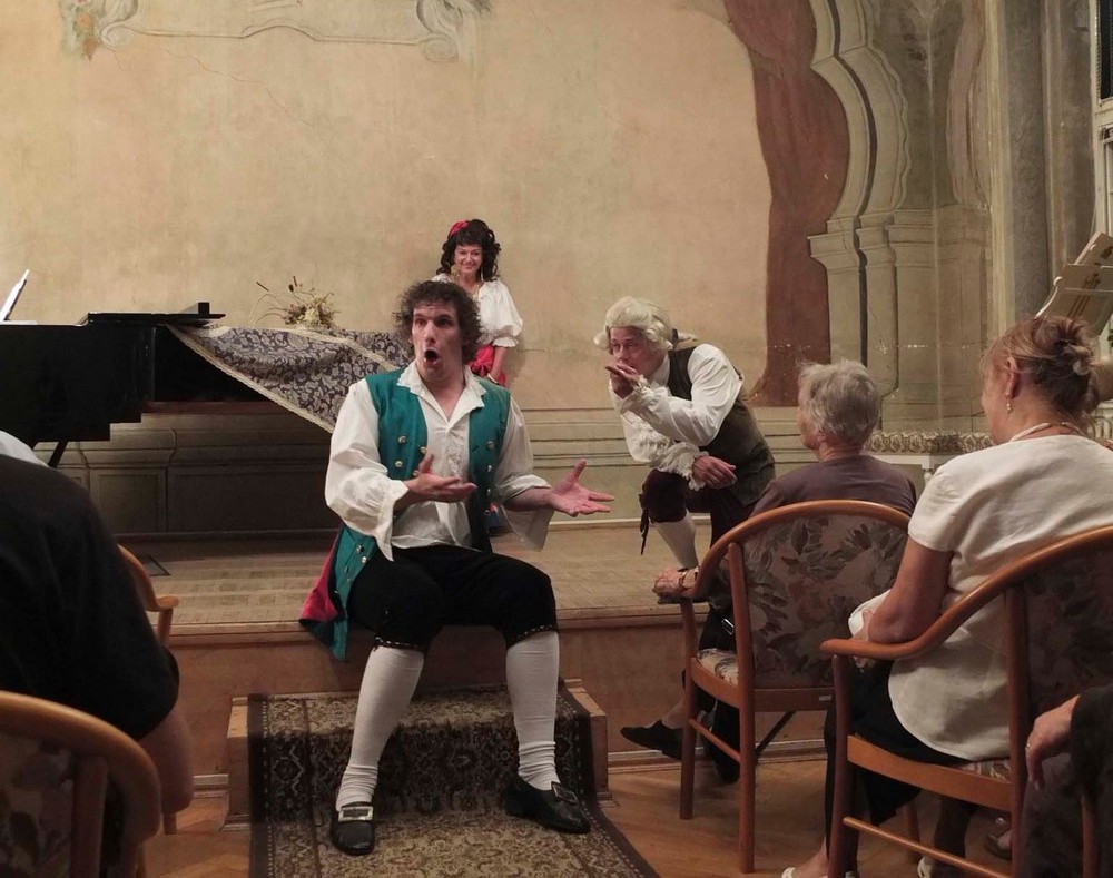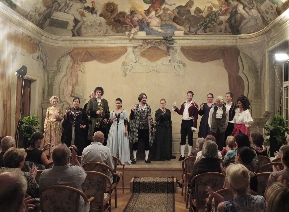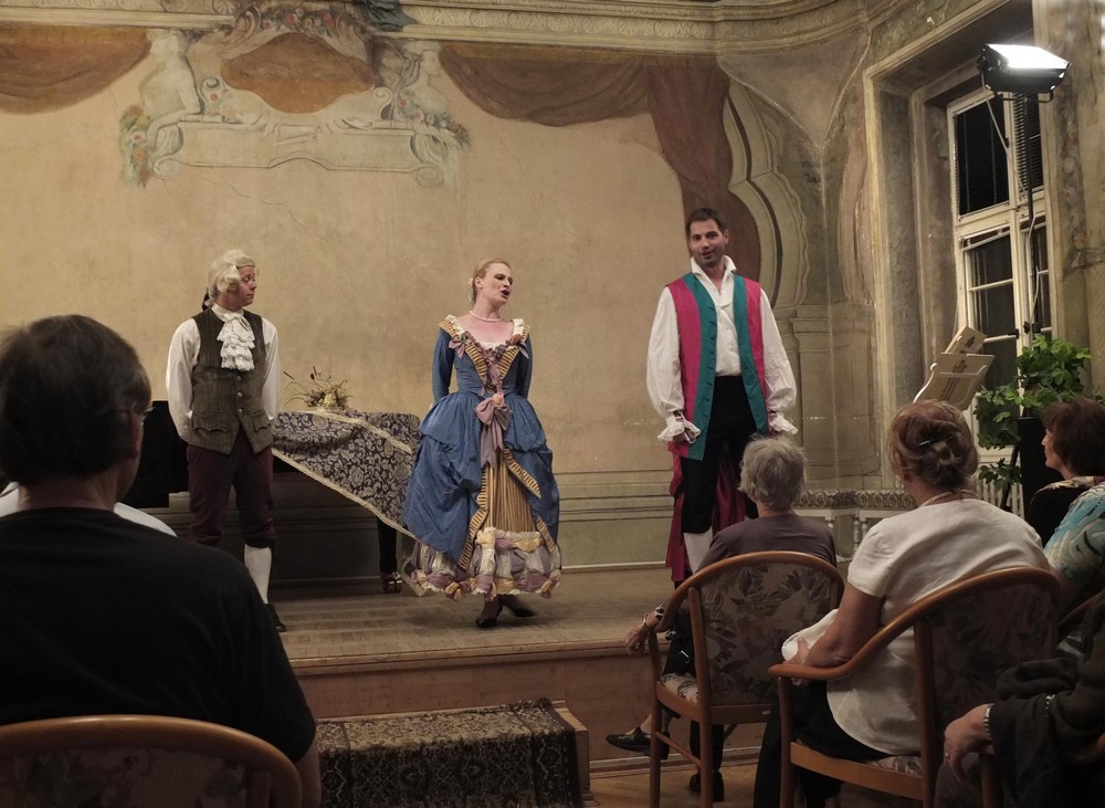 Za necelý týden – v sobotu – uvedl kolektiv mladých umělců v nádherném sále Strakovského paláce v rámci doprovodných akcí festivalu večer, sestavený ze scén a árií Mozartových oper, a to v dobových kostýmech. Pořad, který sestavila ředitelka festivalu Renée Nachtigallová, doprovázel sám skladatel Wolfgang Amadeus Mozart v podání herce Jana Kohouta, v kostýmu mu sekundovala mu také paní Nachtigallová. Diváci mohli naslouchat hudbě z nejlepších skladatelových děl za klavírního doprovodu profesora Augustina Kužely, a to jak v podání některých finalistů a nositelů cen letošního ročníku, tak i vítězů soutěží minulých a také dalších mladých umělců. (Není bez zajímavosti, že někteří z dřívějších finalistů již mají za sebou úspěšnou kariéru v profesionálních divadlech). Opět se technicky zaskvěla Christina Jonston Myachin v Královně noci, loňský vítěz Matěj Chadima zaujal svým Figarem a zvláštní kapitolou byla již také zmíněná Ester Pavlů, která ovládla celý sál jako bouře svým expresivním podáním vstupní árie Donny Elvíry z Dona Giovanniho. Jedno z hudebních čísel této opery oper potom zaznělo v podání všech účinkujících jako závěrečný hymnus tohoto krásného koncertu. Během celého večera byla cítit svěžest mládí a radosti z hudby u všech zúčastněných umělců. Doplním ještě jména ostatních účinkujících: byli to Karolína Bártlová, Helena Krausová, Aneta Měšťanová a Bronislava Tomanová, Jan Ericsson, Milan Hudec ze Slovenska a Michal Křístek. Teď jen doufejme, že neustále sílící ekonomické problémy v kultuře nebudou míti vliv na pořádání dalšího ročníku soutěže.