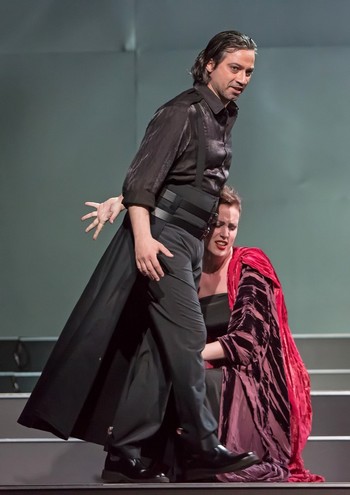 Paolo Lardizzone jako Radames byl objeven Plzní, účinkoval v premiéře plzeňské Aidy, kde brzy poté fascinoval zejména Turiddem i Caniem veristických „dvojčat“ (glosu z této inscenace najdete zde). Paolovi Lardizzonemu prospěl nadčasový kostým bez velikého meče u pasu. Je nádherným spinto tenorem působivé jižní barvy, s lehkou, znělou a suverénní výškou kabinetní ukázky pravého italského „voce di testa“. Ale upozorňuji, což je snad smysl recenze, obdobně jako v Plzni (recenzi Verdiho Aida v Plzni najdete zde), na ne zcela pevnou intonaci ve vstupní árii, kde by neškodila větší sebekontrola v návratu po opojném vysokém béčku do „nevinných“ poloh kolem tónu f, tedy mluvní polohy mnoha tenoristů. Ale neměl by dirigent být prvním, kdo si povšimne a poradí? Právě u tohoto disponovaného pěvce, zřetelně stojícího, dle mého odhadu, na prahu širší kariéry, bych neignoroval tento drobný typ kazu na kráse, při celkově velmi obdivuhodném výkonu.