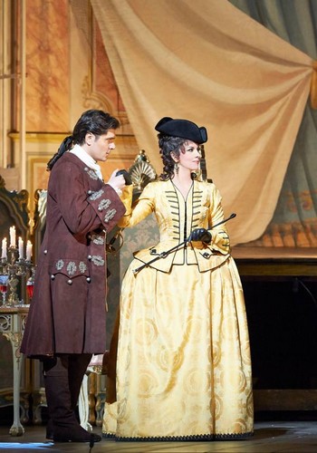 Režie Davida McVicara je přitom teprve tři roky stará, v Londýně byla uvedena roku 2010 s Gheorghiu a Jonasem Kaufmannem, působí však, jako by už měla na hřbetě století. McVicar – nastudování ve Vídni přenechal svému asistentovi Justinu Wayovi – a scénograf Charles Edwards nechali děj odehrávat v době, udané v libretu, tedy na počátku osmnáctého století. To je jistě legitimní, nemusí to tak však vypadat opticky, s haraburdím a plyšem, mašličkami a kanýry na kostýmech (Brigitte Reiffenstuel), a aby masivní a spoře osvětlené dekorace vyžadovaly dlouhé přestavby a dvě přestávky.