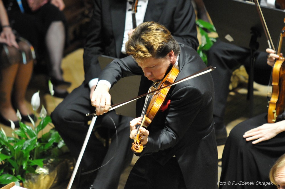 Koncert začíná niternou meditací v pomalém tempu (Nokturno), do níž se vroucím tónem zapojily Rachlinovy housle, a za tichého statického doprovodu orchestru stoupal jejich tón do závratných výšek. Šostakovičova instrumentace je zajímavá a nekonvenční, postavená na kontrastech: nejhlubší tóny a drsně znějící basové nástroje zde stojí proti svítivé lehkosti a výškám houslí. V druhé větě Scherzo Rachlin naplno předvedl svůj neomezený technický arzenál: v náročné partituře plné rychlých běhů, glissand, akcentů začaly z jeho smyčce vlát první utržené žíně. Ačkoli dynamikou nijak nešetřil, jeho tón byl stále čistý a kultivovaný. Také orchestrální doprovod přešel z tiché meditační polohy do dynamické hry plné výbušných rytmů. I ty nejrychlejší pasáže orchestru probíhaly v přesné součinnosti nástrojů, bylo to znát například na vynikajících sólech flétny, fagotu, hoboje, klarinetu či perfektní dvouhlasé souhře těchto instrumentalistů mezi sebou. V divokém bakchanále v závěru se Rachlin otočil houslemi do orchestru a společně si notovali do rytmu.Těžištěm skladby a pro mě asi nejkrásnější větou koncertu byla třetí část Passacaglia, jejíž nástup připomíná pravoslavný chorál nebo tóny varhan v kostele. Do toho pak měkce vpluje jímavá melodie houslí, rozechvělá jako hlas člověka – smrtelníka uprostřed monumentální stavby chrámu. Rachlin hrál citlivě, s velkým vibratem. Pro houslistu je to hodně náročná dlouhá věta, kde hraje prakticky po celou dobu, téměř ani takt nevynechá a na konci přijde ještě dlouhá sólová kadence houslí plná vícehlasů a virtuózních figur vysoké obtížnosti (které právě „nejdou do prstů“ – jak po premiéře řekl David Oistrach). Bohužel během kadence postihl nějakého posluchače v zadních řadách záchvat a na volání po lékaři se k němu z celého sálu sbíhali zdravotníci na pomoc. V takové chvíli – i když Rachlin odolal vzniklému zmatku a nepřestal hrát – lze jen stěží vnímat hudbu.