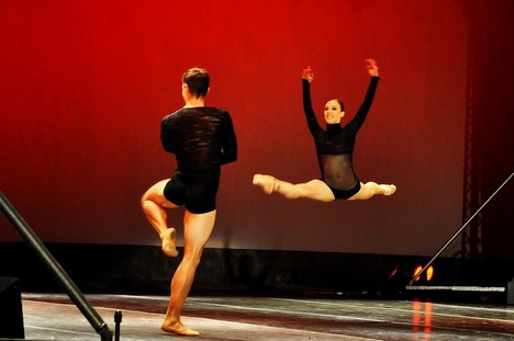 Kreatívna moderná choreografia pod názvom Sinapsi (hudba: Aphex Twin, choreografia: Riccardo di Cosmo, tanec: Vito Mazzeo) prebrala publikum do trochu erotickej polohy v interpretácii tvárneho mäkkého gesta dekoratívneho tanečníka. Fragment z baletu Evgenij Onegin (hudba: Piotr Iljič Čajkovskyj, choreografia: Vasily Medvedev, tanec: Anastasia Goryacheva, Dmitry Gudanov) nebol zvlášť pre nás prekvapením (Onegina má na repertoári aj Slovenskom národnom divadle v choreografii tohto tvorcu), ale bolo príjemné vidieť part opäť v prevedení týchto tanečníkov. Pas de deux z baletu Korzár (hudba: Adolphe Charles Adam, choreografia: Marius Petipa, tanec: Yolanda Correa, Yoel Carreño) úspešne ukončil prvú časť večera touto sympatickou dvojicou s profesionálnym prístupom, vehementným elánom, dokonalými skokmi a v bledomodrom nádychu kostýmov. Podobnú tanečnú virtuozitu ponúklo pas de deux z baletu Giselle, (hudba: Adolphe Charles Adam, choreografia: Marius Petipa, Jean Coralli,tanec: Victoria Anyan, Vito Mazzeo), kde predviedli obaja už v prvej časti videní tanečníci tentoraz svoju klasickú polohu v dokonalej tanečnej nádhere. Rozkošnícky nastavený výstup Dina Tamazlacaru na šansón Jacquesa Brela Les Bourgeois (choreografia: Ben van Cauwenbergh) bol pohybovo prerozprávaným príbehom so známkami popisnej pantomímy (nie, toto ja síce veľmi nemusím), ale tanečník ju predviedol s takým elánom, radosťou a neskutočnou energiou , že vás musel skrátka dostať k čomu iste prispela aj séria absolútne dokonale zvládnutých skokov prevedených s ľahkosťou a razantným odrazom. Duet z baletu Šeherezáda (hudba: Nikolai Rimsky-Korzakov, choreografia: Mikhail Fokin, tanec: Yulia Makhalina, Giacomo Bevilacqua) nás presunul na chvíľu do čarovného orientu, tanečníci ho prezentovali maximálne profesionálne, ale fluidum rozprávkovej mágie sa stratilo v koncentrácii na predimenzovanú techniku. Pas de deux Čiernej labute z baletu Labutie jazero (hudba: Piotr Iljič Čajkovskyj, choreografia: Marius Petipa, tanec: Liudmila Konovalova, Gabriel Davidsson) bol opäť zážitkom vďaka extra výkonu tanečnice, ktorá okrem iného „odkrútila“ (ak som stihla dobre počítať tridsaťsedem fouettés) a ovládla javisko „falošným“ šarmom prefíkanej Odílie v rafinovanom kostýme, ktorý svojim strihovým riešením so zlatou aplikáciou „korzetových“ pruhov pôsobil sexy. Jej partner bol elegantný, ale vo výraze sa zračila plošnosť a neprítomnosť. Sen o Japonsku (hudba: japonská tradičná, choreografia: Aleksei Ratmansky, tanec: Dmitry Gudanov) predvedený v bielom trikote, s esenciou japonského pohybového minimalizmu kládol dôraz na koncentráciu pomalého gesta vo vyprofilovaných pózach. U divákov zožal úspech, aj keď podľa môjho názoru sa dalo ešte v choreografii aj interpretácii trochu kreatívne „pritvrdiť“. Duet Elegie (choreografia: Raimond Rebeck, tanec: Yolanda Correa, Yole Carreño) disponoval krásnou čiernou eleganciou, osobitým fluidom, akrobaciou a interpretačnou profesionálnou presnosťou.