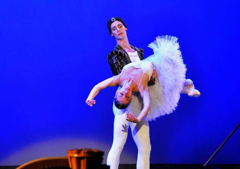 Večer začal Duchom ruže (Le Spectre de la Rose, hudba: Carl Maria von Weber, choreografia: Mikhail Fokin, tanec: Yulia Makhalina a Giacomo Belacqua). Tanečníci akoby sa spočiatku celkom nevedeli zžiť s prostredím a začali trochu rozpačito a nesústredene predovšetkým vo výraze. Tanečne zvládli scénu s prirodzenou profesionalitou, hoci Yulia Makhalina akoby bola vskutku duchom neprítomná a jej partner zas paradoxne prehrával v mimike aj v prenežnelom geste. S dynamikou a netradičnou choreografiou vtrhla na scénu Victoria Ananyan so svojou Carmen (hudba: George Bizet, choreografia: Alberto Alonso) s koncentráciou na pohybové detaily ramien, paží, zo špičiek klesala do civilnej chôdze a priznávala tým „zemitosť“ Carmen s jej prirodzene suverénnou drzosťou a slobodou. Sem – tam by som očakávala vyššie tempo, ale každé premyslené a odôvodnené gesto bolo náležite prežité. Pas de deux z baletu La Sylphide (hudba: Herman Løvenskiold, choreografia: August Bournonville, tanec: Margarita Rudina, Dinu Tamazlacaru) splnilo všetky predstavy o elegancii, krehkosti a zároveň o excelentných skokoch tanečníka. Fragment Kráľovstva tieňov z baletu Bajadéra (hudba: Ludwig Leon Minkus, choreografia: Marius Petipa, tanec: Liudmila Konovalova, Gabriel Davidsson) stál na profesionalite dokonalej tanečnice a subtílnom vysokom tanečníkovi, ktorý spĺňal vizuálne a tanečné predpoklady, avšak výraz mu občas unikal.