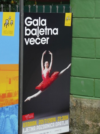 Človek by povedal, že v lete dovolenkujú aj tanečníci. Nie tak celkom tí, ktorí „fungujú“ v Balete gala a prezentujú svoje profesionálne tanečné umenie nielen počas divadelnej sezóny, ale aj mimo nej a nielen v kamenných divadlách, ale aj mimo nich. Prísť sa okúpať k moru do harmonickej chorvátskej Opatije, dať si čerstvý krevetový coctail, lahodnú Graševinu a mať možnosť kúpiť si vstupenku do Ljetnej pozornice (open air divadlo) na Balet gala považujem za dovolenkový bonus (aj keď priznávam, my sme sa cielene vybrali do Opatije kvoli baletnému podujatiu a nadštandard pre nás bolo to všetko ostatné).