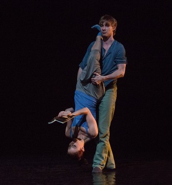 Druhá polovina večera byla ve znamení současného tance. Trochu jako etuda do ní zapadla krátká choreografie Anytime… Jana Adama, který ve zkratce zobrazil klasický milostný trojúhelník. Použil partneřinu vycházející z principů moderního tance a choreografie byla až překvapivě krátká. Choreografii Read Air věnovanou čtenářům knih vytvořila Zuzana Šimáková s Jonášem Dolníkem jako jakési trio pro tři čtenáře a tři knihy. Vztahy mezi trojicí se točily kolem knih, do kterých byli začteni a které poutaly jejich pozornost, tančili spolu jakoby mimoděk, vzájemně si knihy předávajíce, ale stále každý ve svém čtenářském světě. Manipulace s rekvizitami byla začleněna do proudu pohybu naprosto samozřejmým způsobem, byl využit i stůl (téměř nezbytný scénografický prvek většiny dnešních choreografií). Příjemný taneční slovník vycházející z tradičního moderního tance byl plynulý a nenásilný. Rozhodně jedna z „miniatur“, která zůstává v paměti jako příjemná vzpomínka.