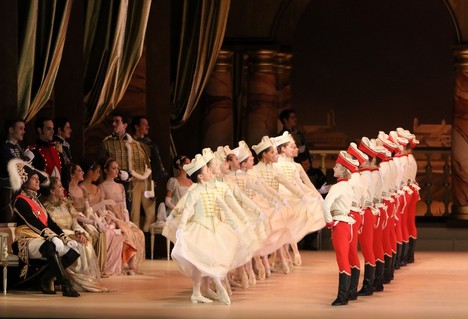 Scénografii nepomáha ani svietenie light designéra Vincenta Milleta, ktoré sa obmedzuje na plošné svietenie farebne sýtymi inteligentnými svetlami, ktoré scénu splošťujú a príliš dizajnujú a sterilizujú. Kaplan je aj autorom kostýmov, ktoré vedľa pôsobivo realizovaných uniforiem z historickej knihy a dobových empírových šiat, pre tanečné pasáže skĺzavajú do akejsi podivnej naivistickej štylizácie. Ani veľkosť scény nezakrýva mnohé nevhodne použité materiály, ktoré svojim vzorom ťažko zaradiť do tohto roku. Volány cigánskych šiat s modernými geometrickými vzormi sa bijú s realistickým uchopením armády. Škoda. Zaujalo ma, že niektoré médiá už oslavujú Kaplana a Ratmanskeho ako dokonalé spojenie. Ako spojenie Nurejeva s Georgiadisom či Frigeriom, ktorého pritiahol od činohry k baletu. Je to naivné prirovnanie, lebo obidvaja vystavali pre Nurejevove inscenácie veľkolepé a detailne prepracované scénografie. U Kaplana sa jedná skôr o štylizáciu a moderný design, kedy ilúzia výpravy neukazuje konkrétnu dobu, ale len pozadie pre účinkujúcich a technické riešenia s jednotlivosťami.