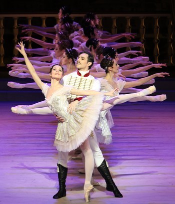 Zaujímavá je spolupráca choreografa s Myron Romanulom. Je nielen dirigentom večera, ale aj autorom hudobnej dramaturgie a korektúr v inštrumentácii. Hudobná zložka, ktorá je poskladaná z hudby niekoľkých autorov si tak udržuje jednotný štýl a je veľmi zaujímavým exkurzom do minulosti. Jednotlivé pasáže ako v dávnej dobe majú rôznych skladateľov, tak ako sám Petipa doplňoval a vylepšoval svoj balet pre potreby jednotlivých sólistiek. Pasáže Deldeveza, vedľa Minkusa, Adama, Pugniho, až po Deliba.