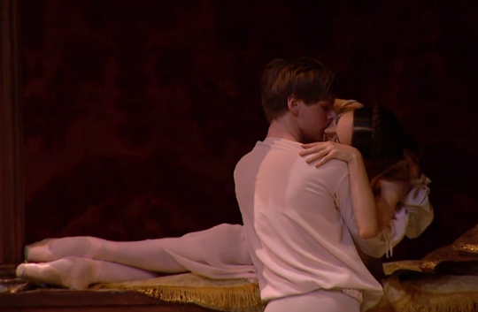 Balkónové pas de deux je známe aj z koncertov a baletných gala, ale v inscenácii dostáva zvláštny charakter, pretože krajina pod balkónom za súmraku vysvetľuje motív spoločného utiekania sa k noci a orientáciu mnohých tanečných figúr. Vítanie noci, ktorá milencov schová a pozdrav prvému spoločnému úsvitu. V dokonalej interpretácii Vishnevy a Shklyarova je to skutočný zážitok. Najmä variácia Romea s celým ohňostrojom zložitých klasických kombinácií a potom spoločné tancovanie až do záveru. A orchester pod taktovkou Valeryho Gergieva skutočne zvukovo čaruje.