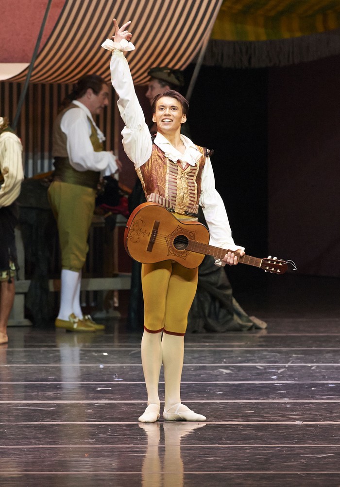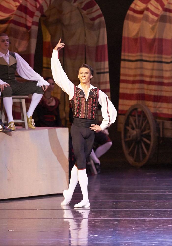 Gabdullin dospieva tiež a ich fígle smerujú až k úspechu a víťazstvu nad tvrdohlavým otcom. Gabdullinova technika a elegancia, žiadne nervózne prešľapovanie, ale vycibrený zmysel pre štýl, s Polákovej technickou suverenitou je dôkazom toho, čo je na klasike nádherné. Dokonalá forma sa spája s obsahom, harmónia a krása pohybov dokáže vyjadriť nielen pozitívne emócie a city, ale aj tragiku, či byť humorná. Neviem koľko bolo v hľadisku stupňov, ale dusno sa dalo krájať vďaka celému nasadeniu ansámblu. Vzácne vyrovnané predstavenie sa stalo skutočným sviatkom, ktorý poteší každého. Vedľa Polákovej sa ako Espada predstavil ďalší slovenský renomovaný tanečník Roman Lazík, ktorý má za sebou a v repertoári tie najžiadanejšie role svetovej klasiky i moderny. Jeho prístup k úlohe toreadora nie je impulzívny a hektický, ale je rafinovane mužný a každý jeho pohyb i gesto sa stáva skrytou erotickou narážkou na prítomné dámy, ktoré ho hltajú očami. Elegancia jeho pohybov, sebakontrola a istota vyzerajú ako skutočný virtuózny tanec nie na javisku, ale v aréne vedľa tvrdohlavého živočíšneho býka, s ktorým tancuje paso doble a jeho zápas je rafinovanou hrou.+++