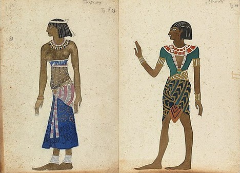 Nasledovala spomínaná Kleopatra s titulnou rolou pre Idu Rubinstein. Václav Nižinskij a Tamara Karsavina boli obsadení ako otroci Kleopatry. Michail Fokin a Anna Pavlova pre úlohy odsúdených milencov – všadeprítomná téma v týchto orientálnych baletoch. Pôsobivá scéna, keď kráľovná vystupuje zo sarkofágu a otroci zdvíhajú telo Kleopatry. Dvanásť závojov rôznych farieb sa slávnostne odvíja od tela kráľovnej a tá s triumfálnym gestom odhadzuje posledný. Panovačná krása Idy Rubinstein je odhalená… jej bledé črty orámované tyrkysovo modrou parochňou, štylizované vlasy viazané zlatom a drahokamami. +++