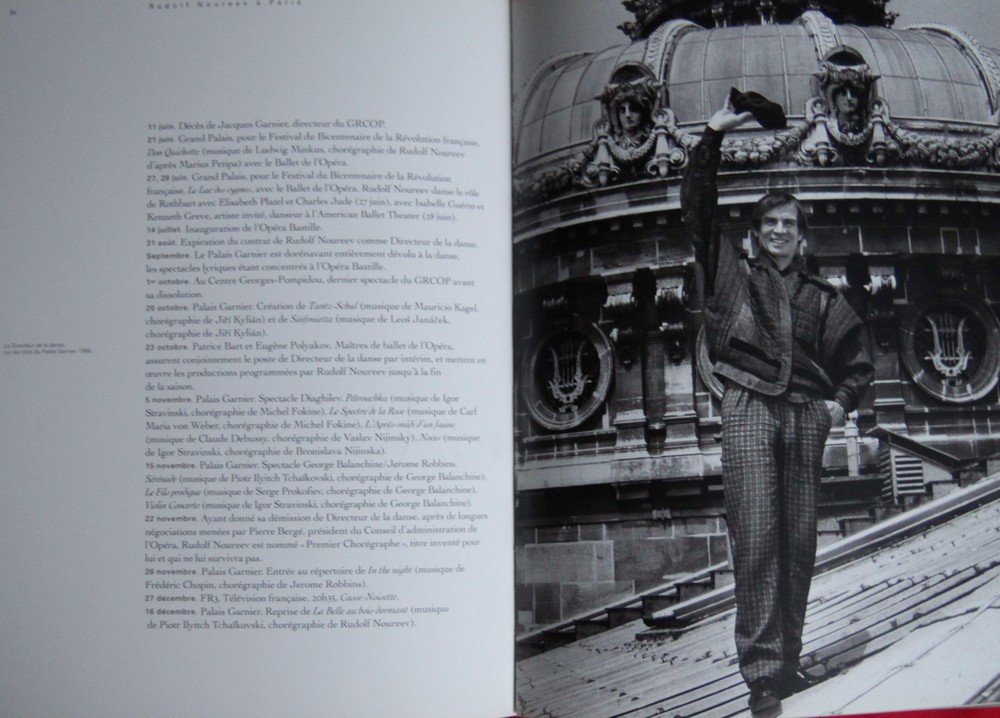 Ako doplnok k nej by mohla slúžiť zdanlivo útla kniha Rudolf Nouree à Paris. Tá má dvoj funkciu. Zachytáva tanečníka v jeho rolách na scéne Palais Garnier ako Siegfrieda, Armanda, Solora, Apollona, Alberta a ďalších. Približuje zároveň jeho dobu kedy šéfoval baletu parížskej opery. Prehľadne predstavuje dvanásť opusov, ktoré pre Paríž vytvoril v rozmedzí dvoch desaťročí. Symbolicky od Kráľovstva tieňov z Bajadéry (1974) po celú Bajadéru v roku 1992, ktorú dokončil už ako ťažko chorý a umierajúci človek. Na klaňačku ho kolegovia priviezli na invalidnom vozíku, aby dal zbohom svojmu publiku a naposledy stál na javisku, ktorého história je zrovnateľná s jeho domovským opusteným Mariinským divadlom.+++