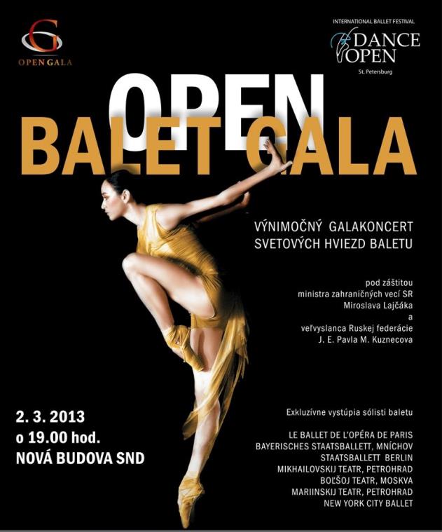 Ale sú aj potešujúcejšie správy. V blízkej Bratislave sa prvýkrát uskutoční Open Balet Gala. Médiá o ňom záhadne mlčia, pritom sa koná už 2. marca v Novej budove SND. Exkluzívne podujatie z Petrohradu Open Balet Gala sa prvýkrát sťahuje do mesta na Dunaji.