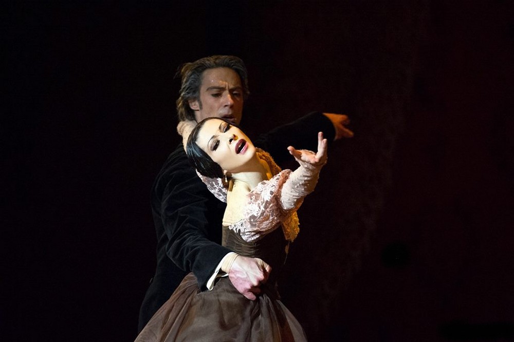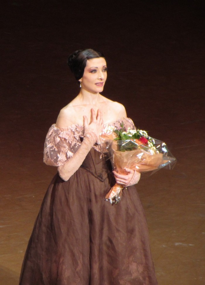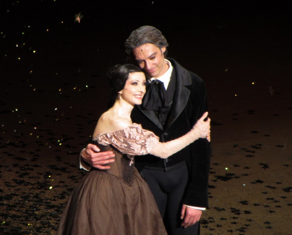 Vedľa novej premiéry druhá časť súboru tancuje v Crankovom Oneginovi. V piatok 28. februára sa v ňom rozlúčila s kariérou v tomto jedinečnom súbore étoile Isabelle Ciaravola. Zaujímavé je, že práve po Oneginovi päť rokov skôr bola nominovaná na étoile. Už druhé lúčenie po Agnes Letestu v tejto sezóne. Onegina s ňou tancoval jej obľúbený partner Hervé Moreau s ktorým sa pred rokom predstavila aj na bratislavskom Dance open gala. „Myslím, že láska trpí“, povedala umelkyňa, ktorá milovala role trpiacich milujúcich žien. Manon, Marguerita, Tatiana. „Vrhla som sa do hudby. To mi umožnilo predložiť formu divadla takú, kde by som mohla dať všetky svoje skúsenosti ako žena, bez ostychu tak ako som zažila vo svojom milostnom živote.“ Dojemné ovácie pred odchodom do oficiálneho dôchodku si skutočne veľká balerína zaslúži. Svojich fanúšikov potešila aj špeciálnym DVD Sur Les Pointes.
