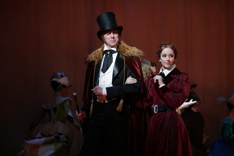 Keď sme u choreografie, potom ešte prichádza tretia rovina a to sú dva balety inscenované ako divadlo na divadle. Opäť iná, jasne čitateľná pohybová kvalita. Luciena geniálne interpretuje Vladislav Lantratov. Mladý tanečník, ktorý má presne ono vnútorné fluidum, ktoré choreograf žiada. Neprichádza na scénu ako interpret, ktorý predstavuje, že je postava. Ale prichádza ako stotožnený interpret s postavou. Lantratovova technika, mladícka energia a vitalita mu dovoľujú zvládnuť najšialenejšie kombinácie vražedných skokov s náročnými pohybovými medzikrokmi. Zároveň ani na chvíľu nevypadne zo svojej postavy. Či sa podarilo v Rusku implantovať ich milovaného Stanislavského do tanečníkov, či je to osobnosťou interpreta, je záhada. Lantratov tancuje spôsobom, ktorý vzbudzuje záujem a pozornosť, pretože rozhodne nevyzerá ako atlét vo vrcholnom fyzickom výkone či interpret, ktorý má presne naučené čo nám predvedie. Zdá sa, že každý krok, každý prvok vychádza z jeho vnútorného sveta, tak ako v jeho mozgu či srdci tečú myšlienky. Zároveň je jeho kreácia pôsobivá tým, že vďaka svojej mladíckej tvári lyrického tanečníka, romantického typu, máme pocit, že nevieme aký je Lucien charakter. Ak je Balzac v jeho drobnokresbe nemilosrdný a učiní z neho typického sebeckého flákača, tak Lantratov toto dokonale maskuje a len v niektorých momentoch nás prekvapí, napríklad keď žiada peniaze za svoj balet La Fille du Bandit.