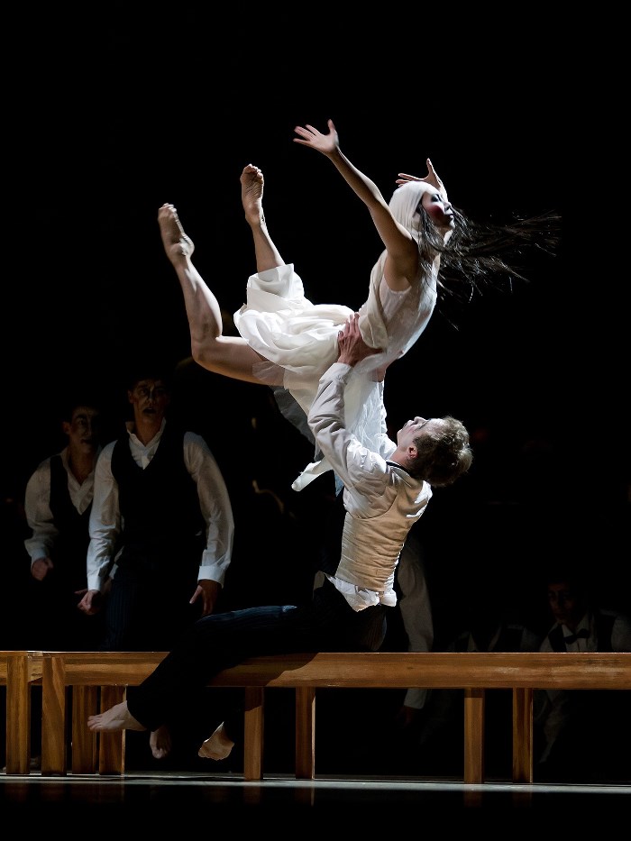 Úvodné Stravinského Noces v choreografii Stijna Celisa sú jasne dionýzovskou, archetypálnou orgiou medzi nevestou a ženíchom. Bubeníčkova transkripcia slávneho Nižinského Fauna je v jeho výklade práve boxerským súbojom medzi apolónskym a dionýzovským. Balanchinov Apollo je už z názvu čitateľný a jasný. A legendárne Svätenie jari v málo známej a napriek tomu geniálnej choreografii Jacopa Godaniho, ktoré slávi tento rok storočie od legendárnej premiéry, je vrcholom prírodného rítu, starých tradícií, surovej brutality, rozkoše a bohoslužbou k Dionýzovi. Nemám rád toto kvákanie o princípoch a hľadanie neustálych významov, ich porovnávanie a pseudo intelektuálne džavotanie o divadelnom predstavení. Takže polemika nebude. Noces belgického choreografa Stijna Celisa (1964), sú vzrušujúcim tanečným divadlom k burcujúcej experimentálnej Stravinského hudbe, ktorej dominujú vokálne hlasy, bicie a štyri klavíry, s ktorých umiestnením už skladateľ experimentoval. Celisa to najskôr fascinovalo a tak celý vokálno- inštrumentálny ansámbel postavil na javisko za priesvitnú stenu. Vytvoril tým strhujúci svadobný priestor, kde muzikanti sprevádzajú svadobný obrad, či možno svadobnú noc. Dvanásť špičkových tanečníkov a balerín vyzul, obliekol do štylizovaných kostýmov a expresívneho líčenia, za ktoré by sa nemusel hanbiť ani Picasso z obdobia svojej spolupráce s Ballets Russes a rozohral svadobný rituál, ktorý odkazuje k tradícii, rituálu, folklóru a mohol by som menovať až do ďalšej panorámy, k čomu všetkému. Vedľa divadelnej koncepcie je ale dôležitejšia choreografova pohybová fantázia. Popri strhujúcej gestickej práci necháva tanečníkov trpieť a milovať sa v novodobých petite mort, kedy slasť, rozkoš a bolesť majú k sebe tak blízko, že svadobné chorovody sa menia na ansámblový tanec i individuálne pas de deux. Takto vyhranený osobitý choreografický jazyk sa dnes po veľkých osobnostiach typu Kyliána, Forsytha, Piny Bausch už len tak ľahko nevidí. Celis nenapodobňuje ani jedného, ale jeho dielo je esenciou toho, čo dvadsiate storočie tancu a baletu prinieslo. Milovníkom moderného tanca odporúčam zamerať sa na jeho tvorbu, pretože je zaujímavo prekvapivá, ideovo naplnená a formálne dokonalá.