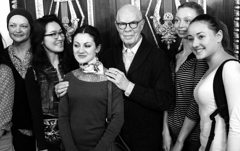Je vidieť, že tvorivé ani fyzické sily choreografa v dobrej nálade neopúšťajú. Nechá sa zmanipulovať do fotení s rôznymi účastníkmi a vzrušené dievčatá priamo komandujú, ako sa majú okolo neho rozostaviť. Roztomilo máva rukami, „Come!“ Come!“ – pospevuje a tancuje vlastnú choreografiu šarmantného génia, ktorý nepohŕda vyfotením s niekým na mobil, či podpisom, či súkromnými otázkami. Trpezlivo podpisuje programy, necháva sa fotiť na mobily ako vzácny exemplár, ktorý zavítal do svätej zeme baletu. Jeho pokorné a prosté vystupovanie naplňuje miestnosť zvláštnou atmosférou a zdá sa, že cárska sála Alexandrijského divadla žiari ešte viac. Náladu mu nepokazia ani výpadky mikrofónu, ktorý desivo chrčí, na čo odpovedá vtipne: „Thank“. Hodina s veľkým umelcom ubehla ako voda. To len chvíle s priemernými, sebe centrickými tvorcami sa vlečú a nemajú konca.+++