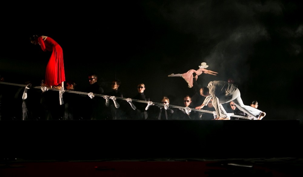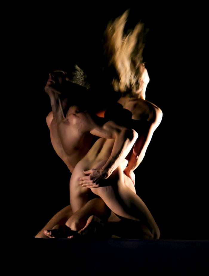 Šoth celkom osobito nestavia vášnivé a allegrové tanečné plochy v akých sa dnes choreografia zhliadla, ale vytvára kontaktné partnerské figúry zložitých fyzických ornamentov a gest, ktoré sa striedajú medzi gestami symbolickými a vášnivým partnerským fyzickým pohybom. Výška stola umožňuje tanečníkom z neho padať a zároveň vykonávať zaujímavé figúry; en avant na deväťdesiat stupňov, pózy a la seconde, arabesky, pirouettées s rotujúcou nohou ponad stôl. Toto hybridné hmýrenie vytvára nielen zaujímavý obrazový vnem, ale aj pohybový. Akrobatické figúry, kedy tanečníci kráčajú na late, držia sa jej a zbor ju vysoko zdvíha, spadajú už do vysokého levelu. Nielen toto vymyslieť taký nápad, ale hlavne ho realizovať a podať tak, aby nevyzeral kostrbato a trápne. Toto sa košickým tanečníkom darí. V pasážach synchronizovaného tanca corps de balletu navyše presne a precízne interpretujú symbolické gestá a tvoria kompaktný celok.