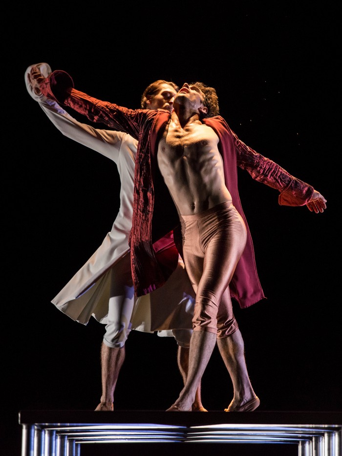 === Prínosom novej premiéry je prvá časť Mozart à 2. Päť duet skúsených interpretov na päť adagiových viet Mozartových najznámejších klavírnych koncertov. Tu slávi sviatok pohyb, tancovanie, muzikalita choreografa i choreografovo pôsobivé videnie ako narába s telom, ako tvorí figúry a drobné nuansy. Bez mudrovania, bez snahy o príbeh, tu práve povstáva vzrušujúce, syntetické tanečné divadlo. Choreografove prekvapivé zvraty vo vedení póz, nebojácna túžba po hmatateľnom fyzickom kontakte medzi mužom a ženou, široké pózy nôh, hranie sa so zdvíhačkami či vlastne banálnym gestom, ktoré rozkvitá tak ako Mozartova hudba. Každé dueto je jedinečné, prekvapivé, choreograf sa s ním stotožňuje a o to sa snažia aj interpreti. Večer skvele otvára pohybovo plastická dvojica Masayu Kimoto a Kiyoka Hashimoto. Tým nerobí ťažkosti odhodiť klasické držanie tela za hlavu a ponoriť sa do toku Malandaina. Nina Poláková v dobe svojej Júlie na druhej scéne bez špičiek, vnútorne obnažená, na dojemné adagio koncertu č. 23 tancuje postavu, ktorá za desať minúť vypovie viac než iný za celý večer. Jej vysoké relevé, akoby sa ani prstami nedotýkala javiska a kultúra pohybu, muzikalita i uhrančivá ženskosť pútajú na seba pozornosť. V inom duete zase Davide Dato a Mihail Sosnovschi po svojom, charizmaticky, definujú choreografiou a výrazom svojich partnerov dám. Malandainovi tanečníci v Biarritzi sú s jeho zložitým slovníkom stotožnení. Vo Viedni sa s ním tiež musia zžiť, aby sa s ním mohli hrať a vtisnúť mu autenticitu ako tí menovaní. Hravé, dotieravé i osudovo pevné expresívne premeny, kontaktnosť choreografie v novej dimenzii kedy sa vychádza od bozku, či gesta, od obtekania tiel k novým formáciám vyžadujú muzikalitu, predstavivosť a súzvuk.+++