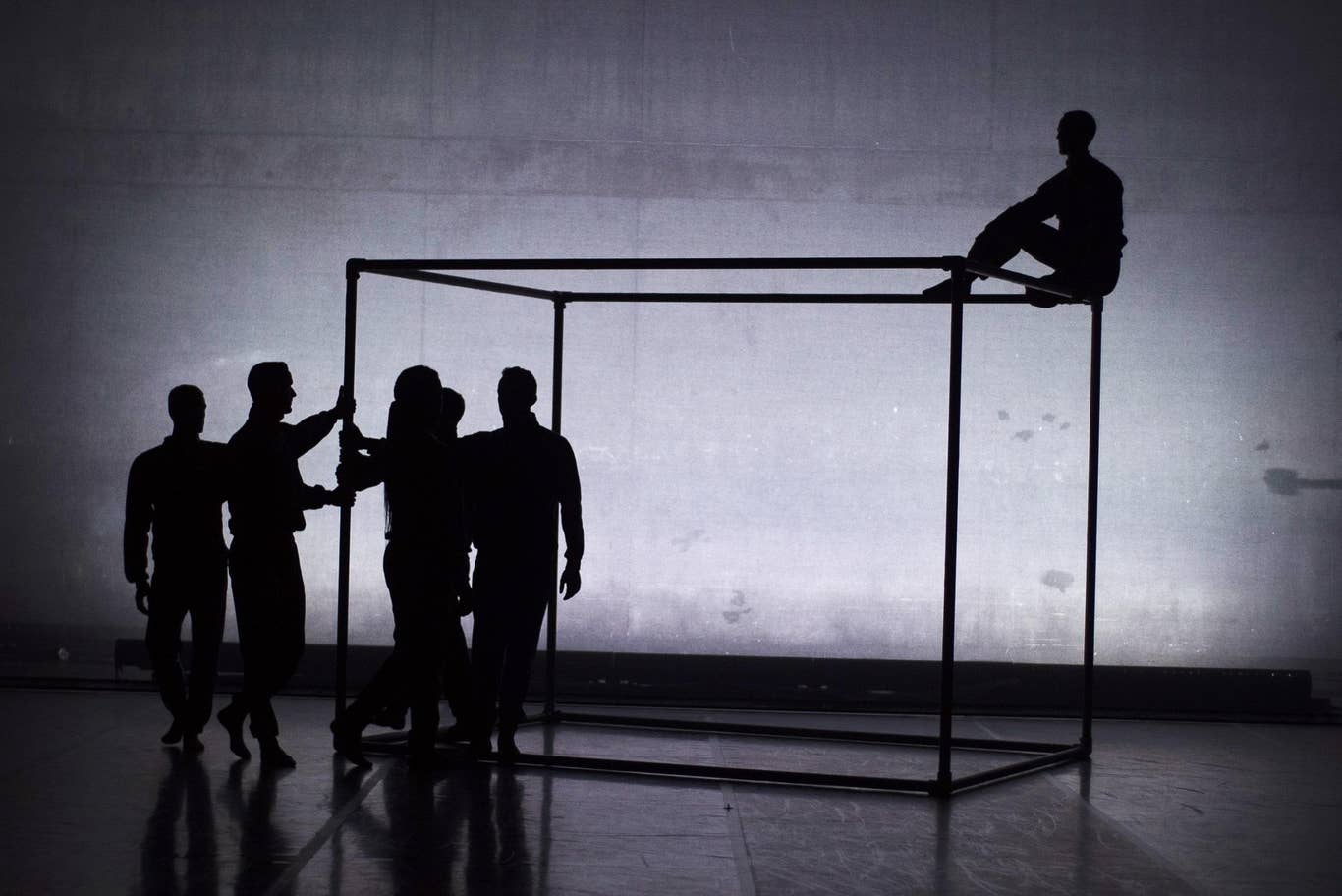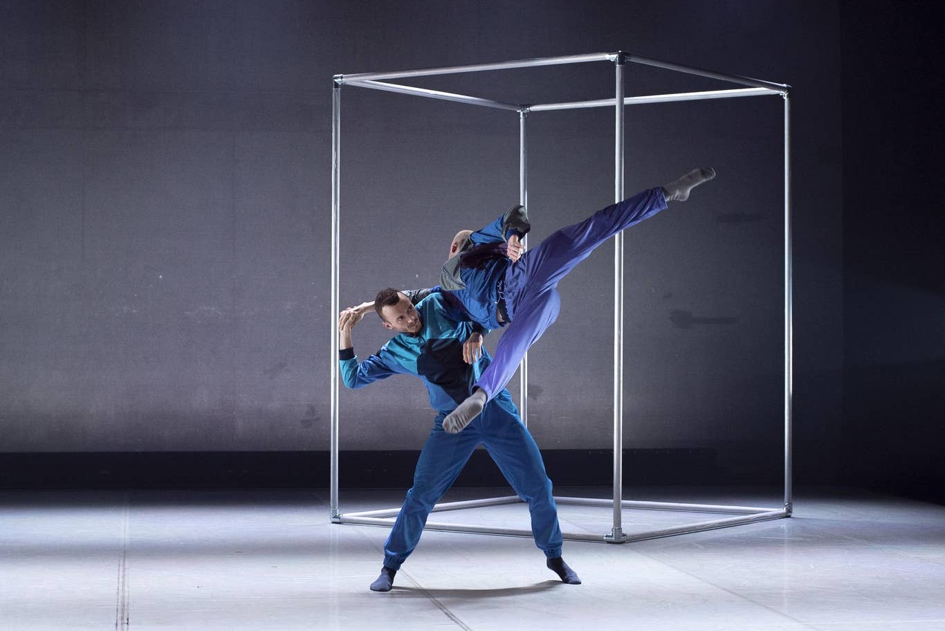 První dílo – Them (Oni), si choreograficky vytvořili samotní tanečníci v rámci postupně se rozvíjejících workshopů, pohybových brainstormingů, tanečních laboratoří, valných hromad a pokus-omylů. Když něco takového vidíte na papíře, po právu se domníváte, že to z logiky věci nikdy nemůže pořádně fungovat. Jenomže ono funguje. A ještě navíc je výsledek, odpusťte mi, zatraceně cool. Šestice tanečníků v devadesátkových, výrazně barevných sportovních soupravách, které jsou svou retro obskurností funkční i kouzelně vtipné zároveň, vystupuje ze tmy do otevřeného prostoru šálami neohraničené scény, kde se mísí v propletencích mezi sebou a současně jako funkčního partnera přibírá vysokou konstrukci z trubek sestaveného kvádru sloužícího coby fyzická opora, gymnastické náčiní, prostředek k akrobatickému vyřádění i určitý ohraničený prostor nabízející ochranu před vnějším světem stejně jako díky absenci stěn osmózu s okolím.