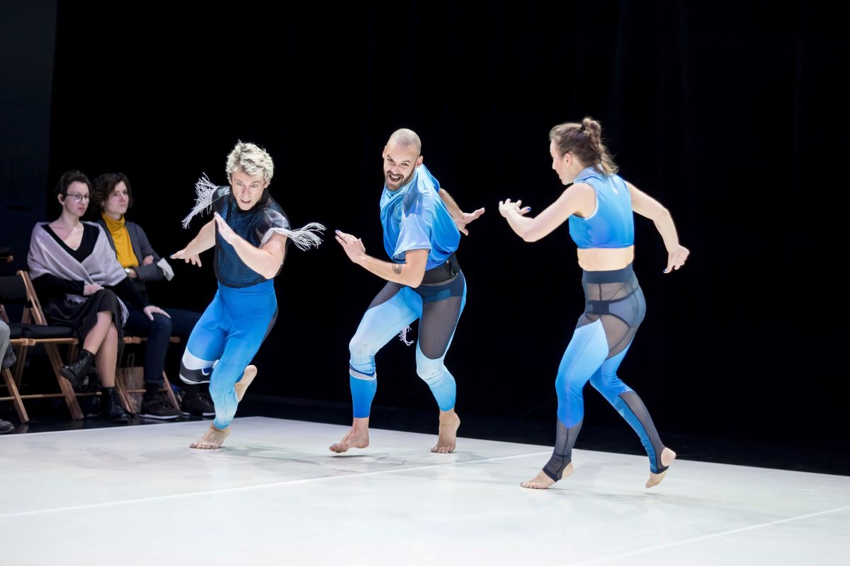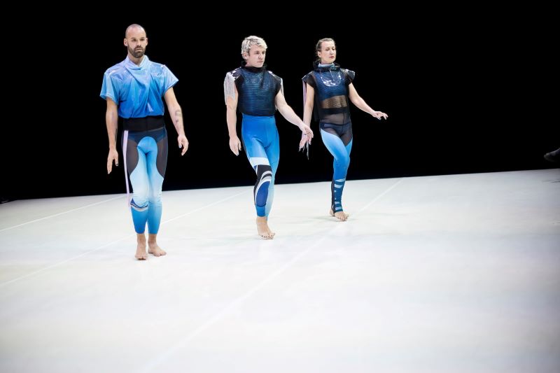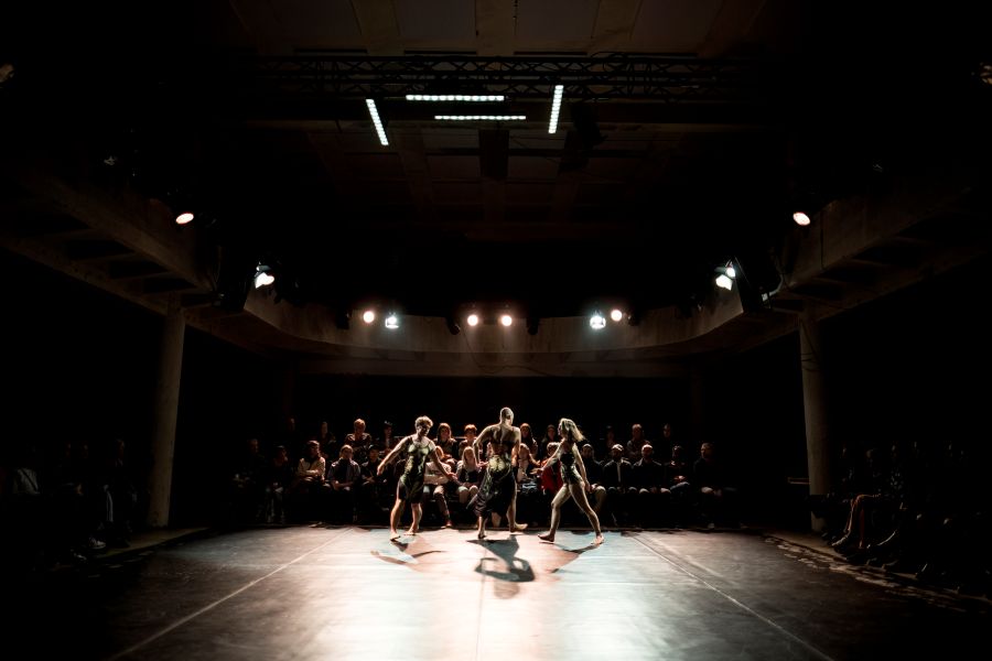 Aleksandar Georgiev: Především pohybovou logikou a strukturou. Stejně jako v předchozích dílech pracujeme s motivem chůze – jde o nepřerušovaný pohyb, kde se jednotlivé situace nerozdělují scénami nebo střihy. Jakmile začneme, pohyb se neustále vyvíjí: roste, zrychluje, mění se geometricky, ale nikdy se úplně nezastaví. Pracujeme tu s podobnou vnitřní logikou jako dříve – tentokrát ale ve folklorně-popovém duchu. Každý díl trilogie má přitom trochu jiný charakter: první část trilogie je výrazně rytmická a „beatová“, druhá spíš jazzová, s prvky sebereference a dragON forever je jakýmsi geometricko-folklorním pohybovým kontinuem.