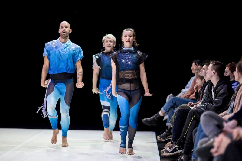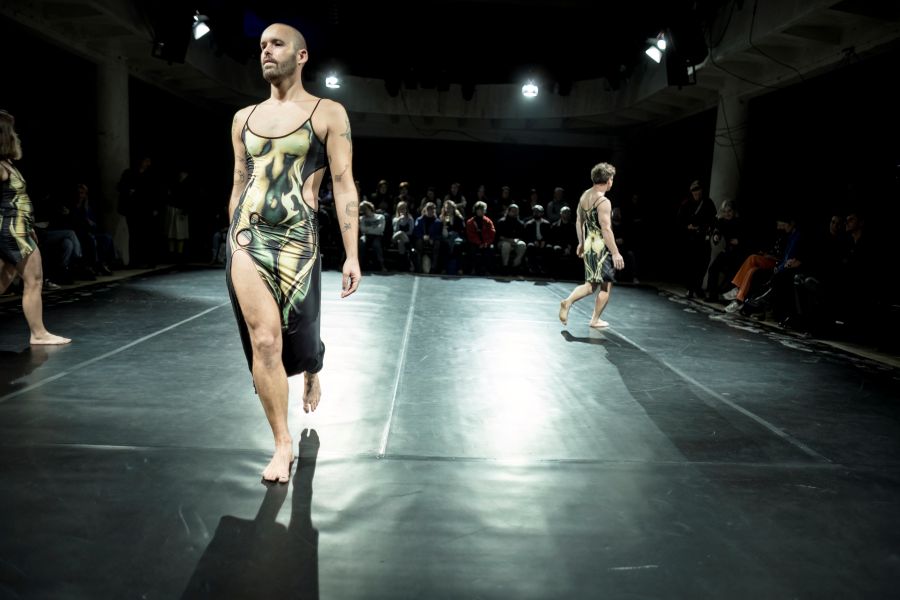Darío Barreto Damas: Kostýmy mají jednotnou estetiku, barevnost a tvar, jsou ale drobně individuálně odlišené. Chceme působit jako kolektiv, jako rodina. Přitom nejsme identičtí, zachováváme si svou individualitu a oslavujeme rozdíly. Kostýmy reflektují naše kolektivní autorství, děláme to samé, ale v mnoha ohledech spolu nesouhlasíme. Je to také o látce a tvaru, od začátku jsme na sobě chtěli mít něco opravdu těsného, něco jako druhou kůži.