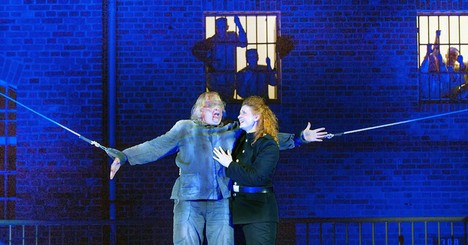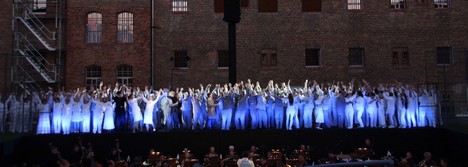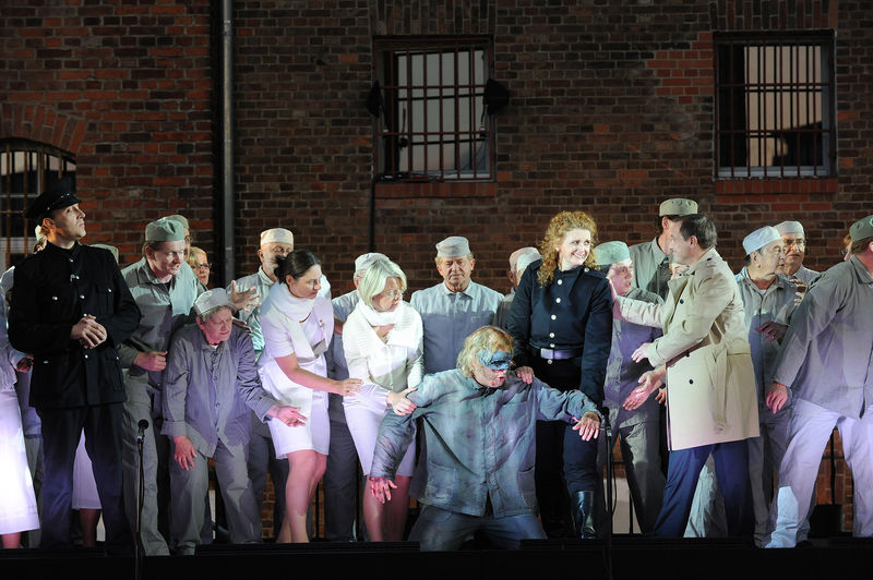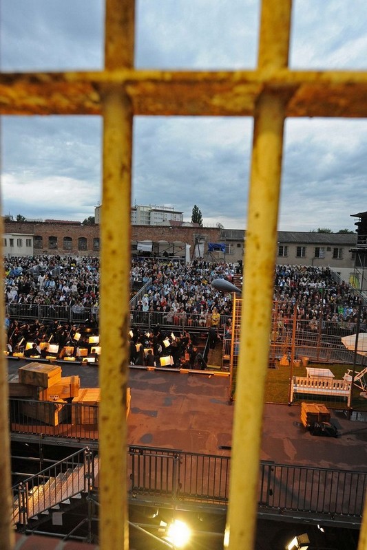 Soubor Státního divadla Cottbus (opera, balet a činohra) ve více než stotisícové lužické Chotěbuzi sídlí v překrásném pozdně secesním stánku, postaveném podle plánů berlínského architekta Bernharda Sehringa. Operní představení se zde nehrají zrovna moc často, ale úroveň souboru je velmi dobrá, což mohu konstatovat po zhlédnutí představení Pikové dámy, Fausta, Čarostřelce nebo Prodané nevěsty v předešlých letech. Divadlo také, jako řada jiných německých scén, nastudovalo Wagnerův Ring. Teď inscenátoři Fidelia přišli s fantastickým nápadem uvést operu ne v divadelní budově, ale v autentickém prostředí areálu bývalého Zuchthausu (věznice). Jak příkladné pro toto dílo touhy po svobodě, které se ve skutečnosti ve věznici odehrává.