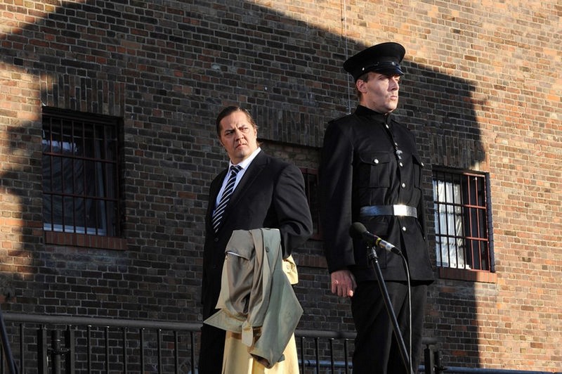Když divák ve velmi horkém podvečeru vstupuje velkou branou do prostor věznice, překvapí jej dusot okovaných bot ozbrojených stráží v černých uniformách a s puškami na rameni, které patrolují mezi přicházejícími návštěvníky, aby tak ještě zvýšily tísnivý dojem, který z celého prostředí čiší. Občas jejich velitel vykřikuje rázné povely a vojáci mění směr svého pochodu.