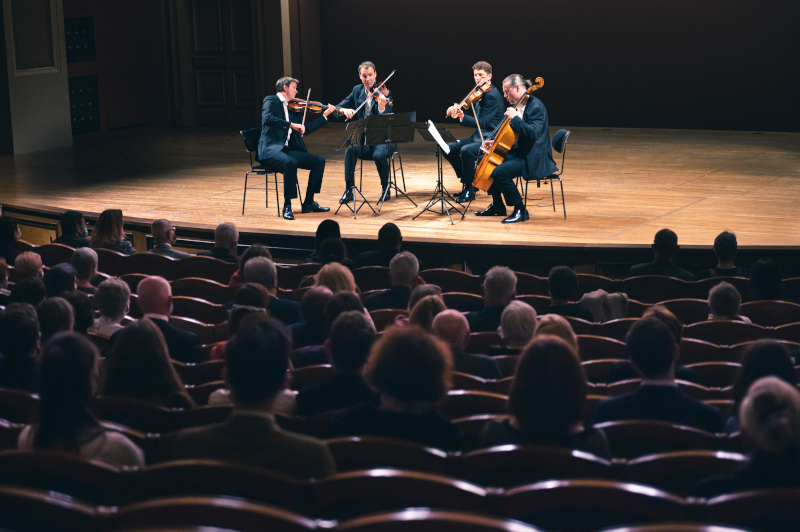 Nic takového jsme ale v interpretaci Bennewitzova kvarteta neslyšeli. Naopak, bylo to prosté potěšení z krásné hudby, vypracované s hodinářskou jemností a přesností, se vzrušujícími kontrasty (Vivace), napínavými zámlkami, sladce líbeznými pasážemi, radostnými nezatěžkanými tempy. Hráči spolu skvěle ladí, často hrají prostým rovným tónem bez vibrata, což mi připadalo hodně atraktivní a nové.