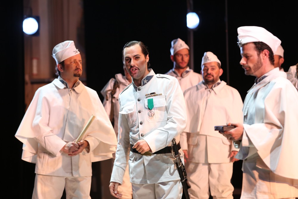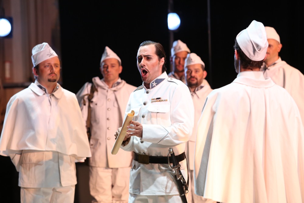 V konkurencii s mužskými protihráčmi však aj tak vyšiel víťazne. Giorgio Misseri (Roberto Geraldini) vlastní typický leggero tenor s minimálnym objemom a tým aj obmedzenou možnosťou narábať s dynamikou. Veľmi nebezpečná tessitura partu ho síce – vďaka jeho špecifickej technike s takmer výlučne hlavovou rezonanciou – nezradila, no ostal dlžný akýchkoľvek dynamických a výrazových vlnení, ktoré aj lyrický part prináša. Ako ešte problematickejší hodnotím výkon Marzia Giossiho, ktorý síce rýchle pasáže Dona Gherarda vyspieval, no jeho barytón sám o sebe nemá farbu ani sviežosť. Krása materiálu pri tomto type partov nie je nevyhnutná, no tremolo v hlase a nevyrovnanosť polôh predsa len na festival nepatria.