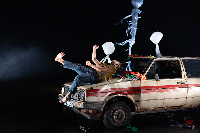 Centrem dění je auto, které hraje důležitou roli a o němž si dovolím říct, že si žije vlastním životem. Troubí, bliká, hraje kuriózní směsici rockových a popových melodií a čas od času vypustí malé bílé přízračné postavičky, zvláštní prvek vyskytující se na scéně snad po celé trvání choreografie. Vznášející se přízraky vypadají jako podivné tiché medúzy plující nekonečným prostorem kolem chlapce či jako znalcům příběhů J. K. Rowling známí mozkomoři. Jde snad o pesimistické myšlenky, úzkosti či strachy hlavního hrdiny, nebo naopak o přátelské mimozemšťany – kamarády bez tváře – narušující chlapcovu osamělost? I to je v závěrečné debatě mezi diváky a tvůrci konzultováno. Autorka úmyslně nechává na každém, aby si našel svůj vlastní význam. Kévinpřipouští, že auto je pro něj také svébytnou postavou (nazývá ho jménem Boris), která je metaforou jeho duchovna, označuje ho za svůj tzv. „safe space“. Ony bílé objekty pak pojmenovává Erics (Erikové) a upřímně potvrzuje, že je původně vnímal jako své kamarády, ze kterých se v průběhu tvorby staly naopak jeho negativní myšlenky, obavy či problémy…