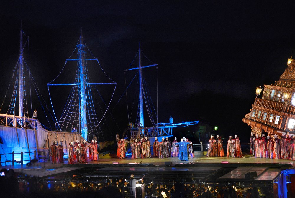Opera Bludný Holanďan je velice často hraným dílem Richarda Wagnera a třeba v Německu je často inscenována i na jevištích velmi malých divadel. Pokud se ale najde veliká scéna a obzvláště v plenéru, inscenační možnosti se na jedné straně rozšiřují, oproti tomu ale vznikají i určitá omezení, která zase nejsou na klasickém jevišti kamenného divadla. Kvůli geografickému umístění dějové předlohy se ale v přírodních divadlech hraje velmi zřídka – základ scénografie, voda nebo moře, se vyskytují v otevřených jevištních prostorech jen minimálně. Ideální je ovšem třeba Bregenz na Bodamském jezeře. Tam byla voda také jedním z hlavních scénických atributů. Nejefektnější inscenaci jsem ale zažil před deseti lety v baltickém přístavu ve finském Turku, kde součástí scény byly dva velké originální škunery, o pár let později ve Štralsundu byl Holanďan uveden v přístavním areálu. A když již popisuji vodní prostředí, tak před lety jsem viděl Holanďana ve francouzských Mylhúzách (další scéna opery ve Štrasburku), .kde bylo jeviště moderního kamenného divadla uzpůsobeno jako veliký bazén; po jeho bočních stranách zasahujících do provaziště neustále stékala voda a opět se přečerpávala nahoru z bazénu, všichni aktéři pochopitelně chodili ve vysokých holinkách.