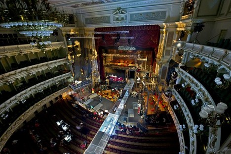 Právě dnes večer má v Semperově opeře v Drážďanech svoji premiéru nové nastudování vpravdě bombastického díla We come to the River (Wir erreichen den Fluss – Dosahujeme řeky) nestora německé opery, pětaosmdesátiletého Hanse Wernera Henzeho. Ten svoji obří partituru napsal na anglické libreto podle Edwarda Bonda pro uvedení v londýnské Covent Garden, kde tato opera burcující proti násilí, válce a útlaku měla v roce 1976 svoji světovou premiéru. Od té dobysi na tenhle titul trouflo jen pár divadel, naposledy v roce 2001 Hamburská opera. A není divu: více než pět desítek sólistů ve 111 rolích a hned tři orchestry se musejí poprat s hudbou různého ražení, od neoklasiky až po části atonální. O scénické podobě ani nemluvě, už třeba jen tahle fotka ze Semperovy opery málem vyrazí dech: