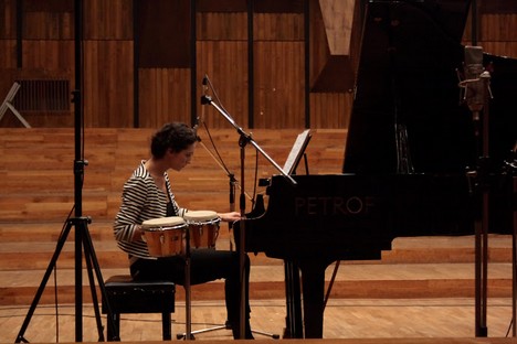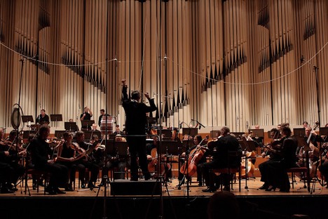 Aj tentoraz sa ukázalo, že je dirigentom s veľkým darom pre oživovanie partitúr hudby dvadsiateho a dvadsiateho prvého storočia. Zvukovo nasýtená slávnostná predohra Chvála zeme Hanuša Domanského (uvedenia tohto diela z roku 1987 som chápal ako „darček“ k skladateľovým tohtoročným sedemdesiatym narodeninám) otvorila koncert svojimi fanfárovými tónmi zvonov, z ktorých sa do mohutného zvukového výsledku odvíjajú ostinátne motívy na postupne zahusťujúcich sa plochách. Oproti tomu charakterovo celkom odlišne vyzneli Tri žalmové fragmenty Jany Kmiťovej, ktoré zazneli v slovenskej premiére. Po prvýkrát boli uvedené v roku 2007 v podaní Deutsches Symphonie-Orchester Berlin a dirigenta Toshia Hosokawu, ďalšie uvedenie zažili minulý rok v rámci Svetových dní novej hudby ISCM vo Viedni (mimochodom, pred vypredanou koncertnou sálou rádia ORF…). Toto veľmi silné dielo, ktoré možno charakterizovať ako orchestrálne meditácie nad biblickými žalmami, využíva dvojicu hárf takmer na úrovni sólových nástrojov. Pre dosiahnutie symetrického zvukového efektu hrala sláčiková sekcia v pozmenenom rozsadení – hráči druhých huslí boli umiestnení v prednej časti po pravej ruke dirigenta, podobne aj obe harfy boli situované symetricky uprostred orchestra.