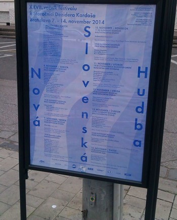 Žiaľ, nepodarilo sa mi navštíviť koncert Slovenského komorného orchestra Bohdana Warchala v utorok 11. novembra (ako jediný sa uskutočnil v Koncertnej sieni Dvorana). Nedá mi v tejto súvislosti nespomenúť fakt, že práve v tento večer sa o rovnakom čase v Bratislave konali nezávisle od seba až štyri rôzne koncerty, z toho minimálne jeden – koncert Speváckeho zboru Technik STU so zborovou tvorbou mladých skladateľov Mariána Zavarského a Miroslava Tótha (očakávania vzbudzujúce Rekviem za mafiána) – by v prípade lepšej koordinácie podujatí celkom zapadol aj pod hlavičku Novej slovenskej hudby. Je to škoda, lebo takto sa už beztak nepočetné publikum inklinujúce k súčasnej hudbe muselo rozdeliť…