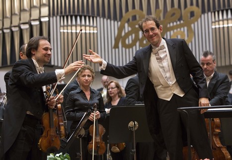 Dramaturgicky zaujímavý bol Koncert pre husle a orchester D dur zázračného viedenského dieťaťa Ericha Wolfganga Korngolda, ktorého Gluck das mir verblieb z vydarenej opery Mŕtve mesto tak zbožňoval Marcel Prawy. Melodická skladba niesla silné znaky filmovej, no vcelku kultivovanej hudby, ktorej sa skladateľ v posledných dvoch desaťročiach života v USA venoval. Husľový part interpretoval v Bratislave už známy a technicky kvalitne hrajúci Renaud Capuçon. Nezvyklo mladé publikum si vychutnalo aj Gerhwinovho Američana v Paríži. Najrozpačitejšie vyznelo úvodné Bernsteinovo Divertimento pre orchester, ktoré len potvrdilo, že slávny umelec bol lepším dirigentom a hudobným propagátorom než skladateľom a orchester ho zahral zbytočne triviálne.