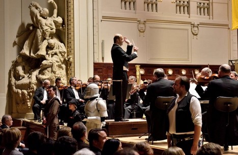 Druhá část patřila nejvýznamnějšímu tvůrci filmové hudby Johnu Williamsovi a jeho Hvězdným válkám. Publikum mohly okouzlit i masky jednotlivých hrdinů, které se v průběhu skladby procházely síní a nechaly se před pódiem vystavovat na odiv. Velkou zásluhu na celkově dobrém vyznění skladby nesou především přesvědčivě znějící žesťové nástroje a efektní hra sekce bicích nástrojů. Nadšené publikum si vysloužilo ještě přídavek z filmu Indiana Jones.