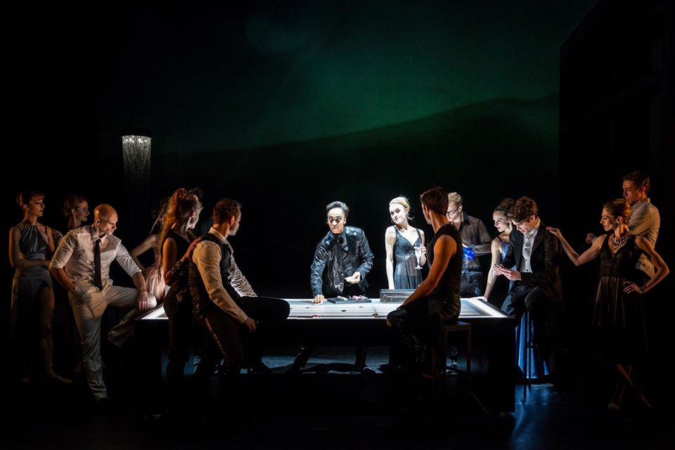 V jednom z obrazů se baví pařížská společnost hrou v karty v drahém kasinu. Střízlivou scénografii už od výjevu v galerii doplňují jen chladně se lesknoucí skvostné lustry z drobných křišťálů, chlad je vůbec nejvýmluvnější charakteristikou výpravy. Oděvy společnosti, která je jakousi bohatou spodinou, se lesknou kůži, flitry a štrasem, lacině povrchní a vyzývavé. Ilustrují úpadek společnosti, která je omámená leskem a šustotem bankovek, zatímco city odsouvá na druhou kolej.