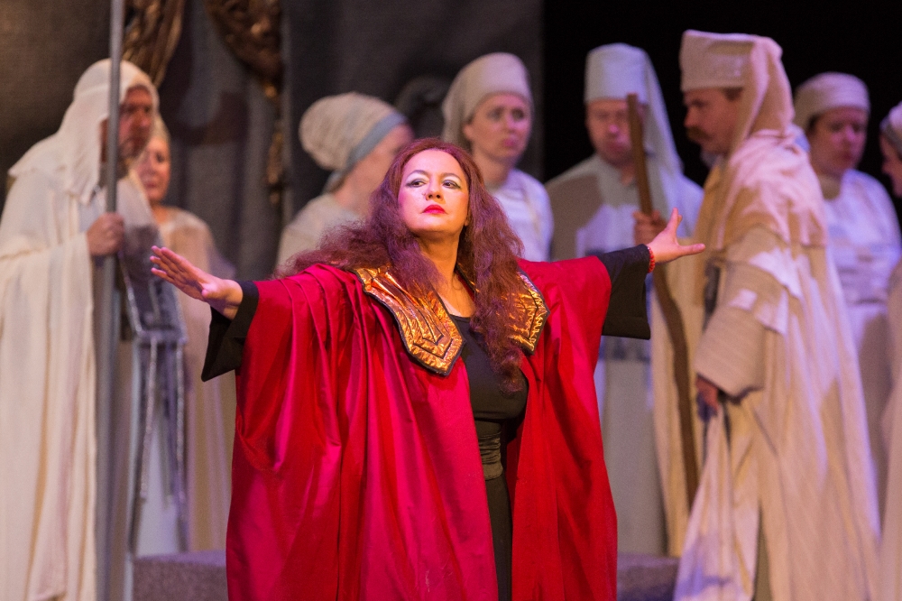 Role Abigail je vysoce náročná. Polohově, rozsahem, dramatičností, která se musí ale zároveň snoubit s hlasovou pohyblivostí. Anda-Louise Bogza, mladodramatická sopranistka původem z Rumunska, absolventka HAMU v Praze, je typický velkoformátový typ sopránu, který velká divadla potřebují jako sůl. Abigail jí dobře „sedí“ jevištně, představitelsky. Velký rozsah role zvládá dobře, z prsně interesantně zazněvších hloubek se lehce dostává zpět do registrálního mechanismu hlavových středních poloh. Jen nejvyšší tóny neudrží vždy kulatost krásných tónů středních poloh a občas intonace nebyla zcela přesná. Ale globálně vzato působí v technicky velmi obtížné roli sympaticky jistým dojmem.