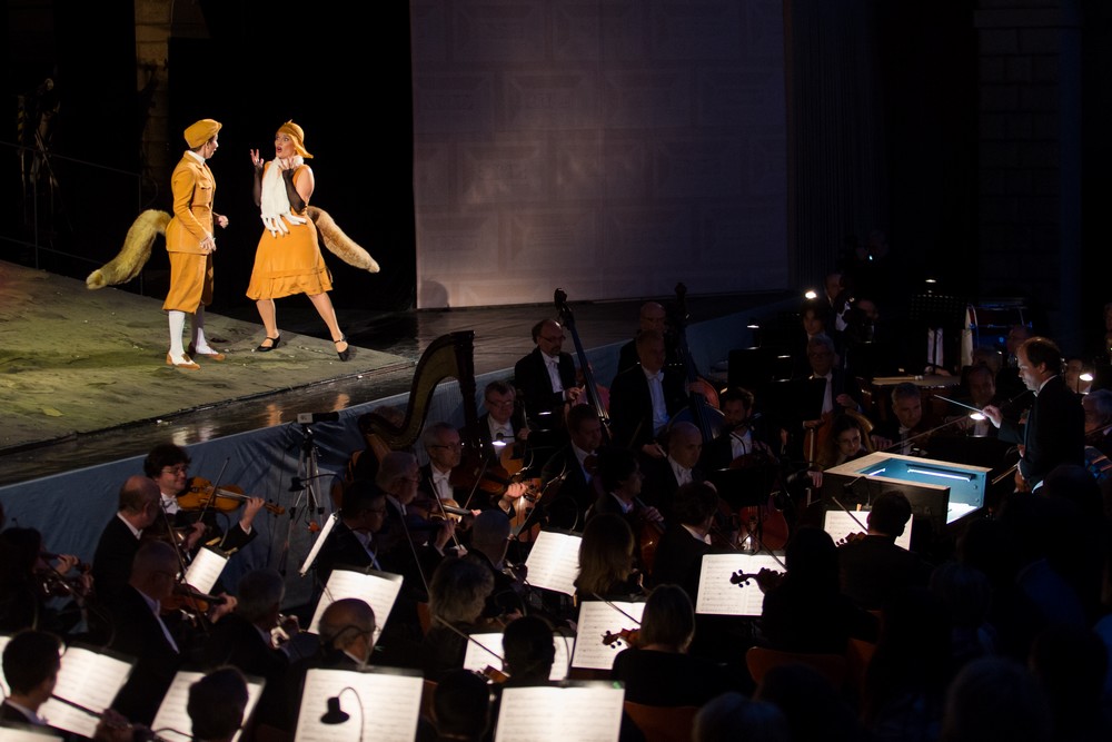 Na festival v Litomyšli přijel soubor Opery Národního divadla s dirigentem Zbyňkem Müllerem, který inscenaci v Praze přebíral dirigentsky po Robertu Jindrovi. Premiéra v Praze byla 20. března 2014 a zaznamenala úspěch. Zbyněk Müller je dirigentem, který Janáčka zcela zjevně miluje a vnitřně cítí. Bylo to na jeho dirigentském projevu dobře znát. Vedl orchestr s rytmickou jistotou pro nesnadné tempické změny, nechával vyznít pompézní gradace závěrů v plném orchestrálním lesku a s vyzdvižením plného forte žesťů. Trochu problémem je ovšem v prostoru Litomyšle překrývání hlasů většiny sólistů. Orchestr je usazen u pódia, ne jako v divadle. Dokonce při Bystroušce běželo čtecí zařízení. Tak to je ovšem trochu tragédie, v české opeře, s českým textem – zde jen cituji údiv jednoho posluchače v auditoriu Litomyšle, zcela zjevně operního fandu… Opravdu je to tak. Musím mu dát za pravdu coby „vox populi“. Většinu hlasů orchestr dost kryje. Orchestr, který zněl pod jistým, imponujícím vedením Zbyňka Müllera pěkně, harmonicky plně, vyrovnaně, s vrcholy opravdu poukazujícími na jistou sounáležitost s veristy.
