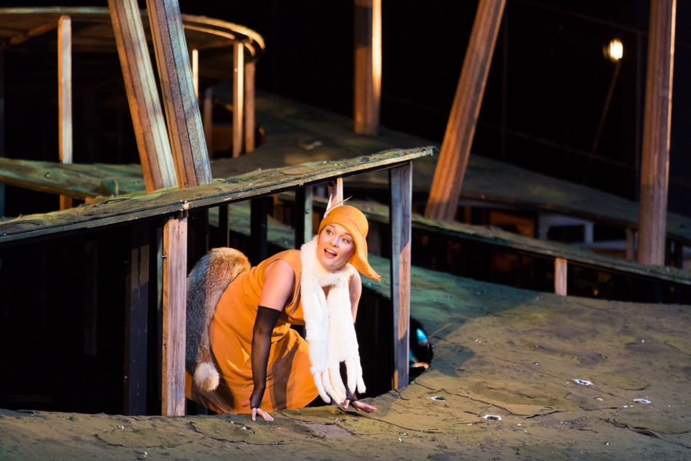 Na scéně Martina Černého, která se v Litomyšli měnila jen v detailech, učinil Ondřej Havelka z Bystroušky krásný milostný román. Využil právě Janáčkovy náznaky a zámlky, takže se nám Revírník stane milencem oné Terynky (prosím, opravdu s „y“, to není překlep, jde o jinou Terynku než ve Dvořákově Jakobínu), na níž si myslí už nejen Rechtor, nýbrž také Harašta. A proč ne? Sám stárnoucí Janáček byl doslova posedlý Kamilou Stösslovou, ostatně ono francouzské – „za vším hledej ženu“ – je také zde platné. Zvláštní splynutí lidského a zvířecího světa symbolizují i kostýmy Kateřiny Štefkové. Bystrouška tak má módní dobře padnoucí obleček z dvacátých let, podtrhující vnadné křivky obemknutých stehen, ale i sukní nad koleny s eroticky naladěným podtextem.