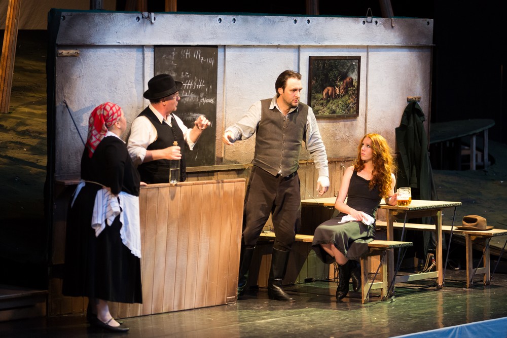 Totéž pes Lapák takového velkého fondu, jaký má k dispozici mezzosopranistka Václava Krejčí Housková… V Plzni nedávno jako Siebel v Offenbachovi málem tóny bourala divadlo… Ale ve francouzštině, kde je to jedno, zda se rozumí, neb stejně zde rozumí jen zdatný znalec francouzštiny… Jinak, holt, v Čechách češtinu budeme luštit z titulkovacích zařízení. To jsme dopadli… Nicméně působivého Rechtora vytvořil postavou statný tenorista Jan Vacík, jemuž občas rozumět je. Zejména ve vyšších, znělých polohách role, kde se jeho tenor pěkně prostorově rozezní. Čekal jsem napjatě, jak vyřeší režie repliku Revírníka na jeho tělesnou schránku, totiž, že je „kostrbaté jako lóč“. Vyřešila to vtipně. Jezevce a Faráře představoval Jiří Sulženko, Haraštu Jiří Hájek. Čtecí zařízení pomohlo porozumět, co chtějí publiku sdělit. Jiřímu Sulženkovi pomohla i dočasná pozice před orchestrem, kde se svěřuje první řadě diváků, a dokonce jim ukazuje fotografie. Seděl jsem zcela na opačné straně, takže jsem z jeho sdělení tolik nezachytil.
