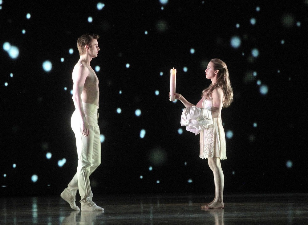 Čo inscenácii bohužiaľ príliš nepomáha je nedopracovaná, akoby narýchlo skomponovaná hudba Zbyňka Matějů. Prvoplánovosť hudobnej partitúry je do očí bijúca. Napísať baletnú hudbu je možno najťažšia úloha. Hudba musí slúžiť príbehu, nie je v nej možné uplatniť všetky symfonické postupy, nie je to vokálno-inštrumentálne oratórium, ale potrebuje mať hudobné kvality a zároveň dramaturgickú výstavbu i kvality symfonického diela. Časť hudby je nahraná v štúdiu, časť hrá orchester naživo a vstupuje do nahrávky. Banálnosť niektorých tém, či ich remeselné, skladateľské uchopenie nevedie k žiadnemu hudobnému kontrapunktu, ale len k zvukovému varírovaniu a balansovaní na hrane medzi filmovou hudbou pre romantický gýč a snahou o veľkoformátovú hudobnú fresku. Malé obsadenie orchestra, matná farba zvuku, prehlušovania rytmickou dominanciou bicích, prvoplánové použitie klavíra, či hárf, nesvedčí o kompozičnom majstrovstve skladateľa. Ani ozvláštňujúce zvukové zapojenie spevných hlasov, bohužiaľ banalitou témy, nepôsobí sugestívnym dojmom. Neustále búšenie, glisandá, ostentatívne vyludzovanie mňaukania na sláčikoch, nie je nič nového. Celá hudba pôsobí len naoko a hrá sa na serióznu kompozíciu. Akustické prvky ako hlasy, ruchy, ozvena, nie sú dramaticky účinné a spôsobujú ešte väčší rozpor medzi kantilénou melódie a nekonečnými pasážami akejsi strašidelnej hudby, ktorá je iba zvukomalebná ale nie je kompozične podchytená. Banalita hudobnej invencie autora vrcholí v scéne plesu, na ktorom akoby hral na playback jubox. Čo do výstavby motívov postáv či situácií a rytmiky, hudba zostala na pomedzí priemernej kompozície pre film a fascináciou Glassom, či súčasnými kompozičnými trendmi. Pritom libreto poskytuje dostatok hudobných a kompozičných úloh. Skladateľ nenapísal ani nadčasovú hudbu ako Joby Talbot pre Alenku v ríši divov. Škoda premárnenej šance. Dirigent Pavel Šnajder a orchester hrali ako najlepšie mohli, ale matný dojem zo skladby nezvrátili.