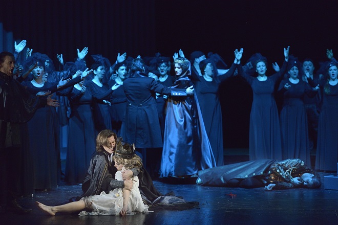 Poslední obraz – rozsvícená scéna, veliký sbor a chystaná slavnost k Maxově zkušební ráně. Slavnému úvodnímu sboru myslivců předchází za smíchu publika ústní recitace několika slov textu sboru „Jo ho! Tralalalala!“ jedním z lovců. Přiznávám, nadšen jsem tímto komickým extempore zrovna nebyl. Sbor pod vedením Andrease Ketelhuta ale zpíval výborně. Není třeba podrobně popisovat další děj, kdy Max chce vystřelit na pokyn knížete Otokara zkušební ránu na vysoko letící holubici a nedbá Agátino, „Schüss nicht“ – „Nestřílej!“. Vyjde rána, Agáta se kácí k zemi, avšak jen omdlela a zasažen byl zloduch Kašpar. Rozhořčeného knížete Otokara v jeho krátkém, ale pěvecky náročném výstupu ztvárnil na slušné úrovni mladý Nils Stäfe. Na závěr se zjevuje vznešený poustevník (Vazgen Ghazaryan z Arménie) a sonorním hlasem se přimlouvá, aby byl zmírněn tvrdý knížecí verdikt nad provinivším se Maxem. Trest nad Maxem knížetem je tak změněn na roční zkušební lhůtu a vše šťastně končí závěrečným sborem děkujícím nejvyššímu na nebesích.+++