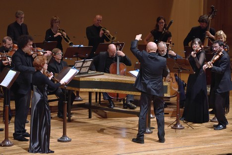Fantastický výkon však přednesl také komorní orchestr I Barocchisti pod vedením Diega Fasolise, který hrál na kopie klasicistních nástrojů. Fasolis svým gestem orchestr příliš neřídil, ale spíše směroval vývoj hudby a dynamických odstínů. Jeho gesta byla většinou úsporná, občas však používal pohyby zbytečně afektované, které jen stěží mohly být v hudbě jakkoli funkční. Vedle výkonu Cecilie Bartoli byla hra orchestru taktéž skvělým požitkem. Ansámbl byl velice dobře sehrán po technické i intonační stránce. Instrumentalisté sice většinou „jen“ doprovázeli, ale vše bylo provedeno s mimořádným nasazením a především s citem k pěvecké lince. Sólistka tak měla maximum prostoru, aniž by musela mít strach, že bude zanikat mezi hlasy orchestru, který pro ni vytvářel dokonalý podklad. Tyto doprovody byly velmi bohatě propracované a byla umně vytažena všechna místa, kde mají nástroje jakoukoli hudební iniciativu, což byly vedle ritornelů kupříkladu i pouhé harmonické spoje. Celkový zvuk, tvořený kromě smyčců též flétnou, hobojem, fagotem, dvojicemi lesních rohů a trubek a tympány, byl velmi kultivovaný a vyrovnaný, pouze dřevěné dechy v celku občas přirozeně zanikaly. V árii Pastor che a notte ombrosa (Francesco Domenico Araia) bylo využito rovněž zvukomalby ptačího zpěvu a vanutí větru. Skvělá pak byla sóla některých hráčů na dechové nástroje, jmenovitě hobojisty Piera Luigiho Fabrettiho, flétnisty Jeana Marca Goujona a trumpetisty Jaroslava Roučka. Ze smyčcových nástrojů se představila vynikající houslistka, koncertní mistryně souboru Fiorenza De Donatis. Jejich excelentní výkony byly jedněmi z pomyslných třešniček celého koncertu. Výtečné však byly také orchestrální věty, kterých zaznělo několik a v nichž hudebníci výtečně přednesli jak pozdně barokní operní styl, například v předehře opery La clemenza di Tito Johanna Adolfa Hasseho, tak raný klasicismus (Francesco Domenico Araia: předehra k opeře Bellerofonte).