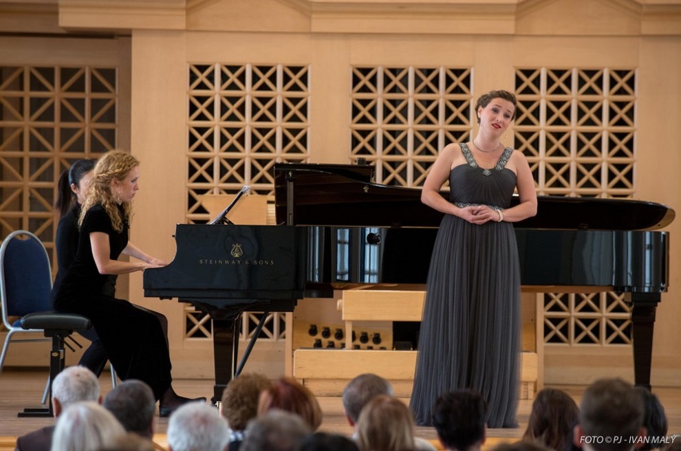 Céline Mellon s doprovázející klavíristkou Jelizavetou Tuljankinou zahájila recitál náročným cyklem Šesti písní, op. 68, Richarda Strausse. Zpočátku působila trochu nezkušeně, jako debutantka, která má v hrdle skvělý materiál, ale ještě technicky neobroušený – občas nějaký tón nedotáhla, občas jí chyběl dech, výraz sice roztomilý, ale trochu nepřirozeně strnulý. Pak jsem si ale musela opravit názor. Obrat nastal po technicky nejnáročnější písni Amor s rychlými koloraturami, rychlými běhy, skoky do nepohodlných intervalů a jinými nástrahami – a tu zvládla bez chybičky a ještě s koketním výrazem. Jako by z ní spadla tréma, předchozí těžkopádnost byla pryč, dokonce tuto píseň ještě na konci recitálu zvolila jako přídavek. I poslední Píseň žen jí vyšla po výrazové stránce o mnoho lépe. V dramatické písni, která líčí strach manželek o muže na rozbouřeném moři, na bojišti, v zasypaných dolech, se také výrazně uplatnila klavíristka Tuljankina, protože klavírní part zvukomalebně líčí všechna tato dramata.