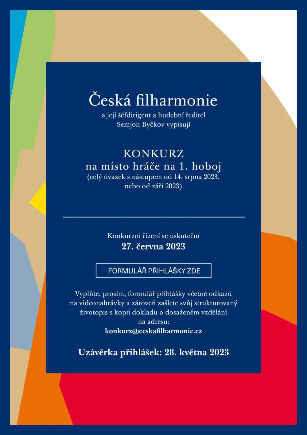 Inzerce Česká filharmonie vypisuje konkurz na místo hráče na 1. hoboj Publikováno 24/04/2023 sdílejte: 0 minut čtení sdílejte: Formulář přihlášky zde. TémataSeznam inzerátů Sdílet článek Facebook email zkopíruj odkaz vytisknout sdílejte: Předchozí článek Týden s hudbou. Koncerty, TV, kino, streamy Další článek Pražští filharmonici v květnu s Marcelem Minkowským a houslistkou Grace Park 0 0 hlasy Ohodnoťte článek Odebírat Přihlášení Upozornit na nové a další komentáře nové odpovědi na můj komentář Label {} [+] Jméno* E-mail* Webová stránka Label {} [+] Jméno* E-mail* Webová stránka 0 Komentáře Nejstarší Nejnovější Most Voted Inline Feedbacks Zobrazit všechny komentáře Načíst další