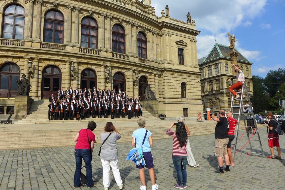 Česká filharmonie zbrojí na sezonu, a tak si v září mimo jiné pořídila i nové oficiální foto. V tuto chvíli se právě retušuje. Jak focení probíhalo, můžete vidět z následující exkluzivní fotogalerie. Rozhodně vzbudilo velký zájem kolemjdoucích, kteří se ovšem také dožadovali hry. Té se jim ale nedostalo, dočkali se však pozvání přímo do Rudolfina, do jeho mimořádně akusticky skvělé Dvořákovy síně… +++